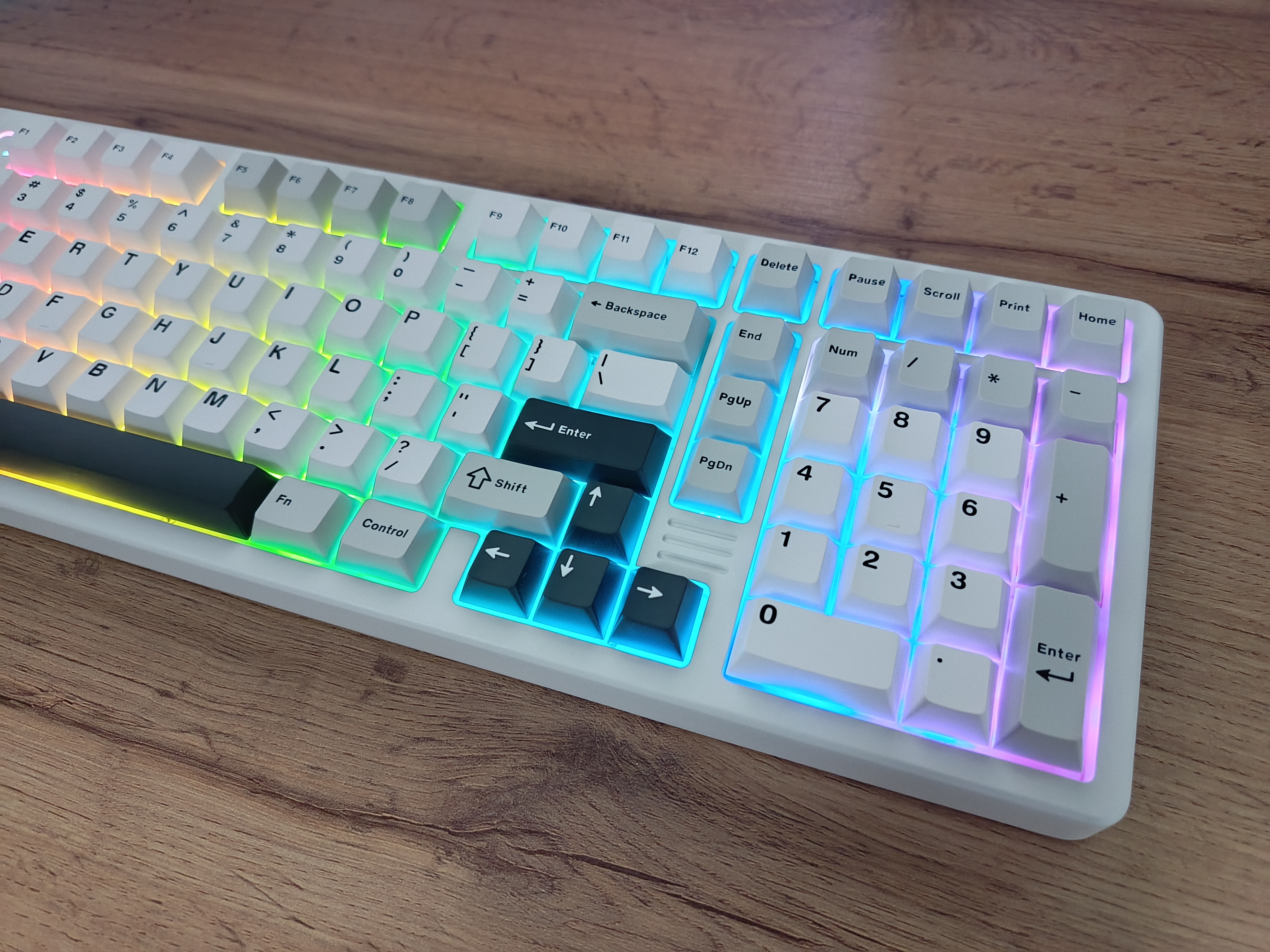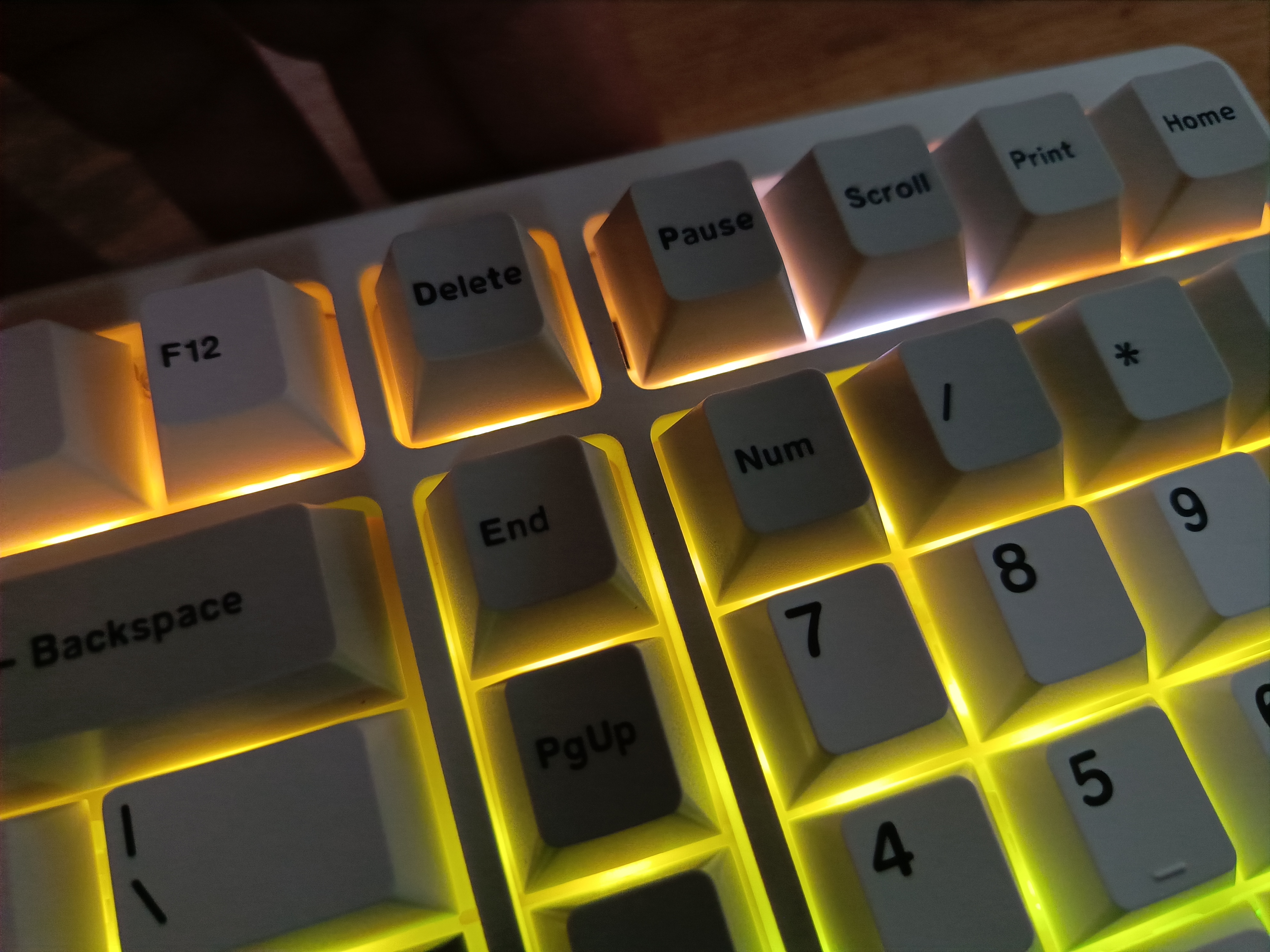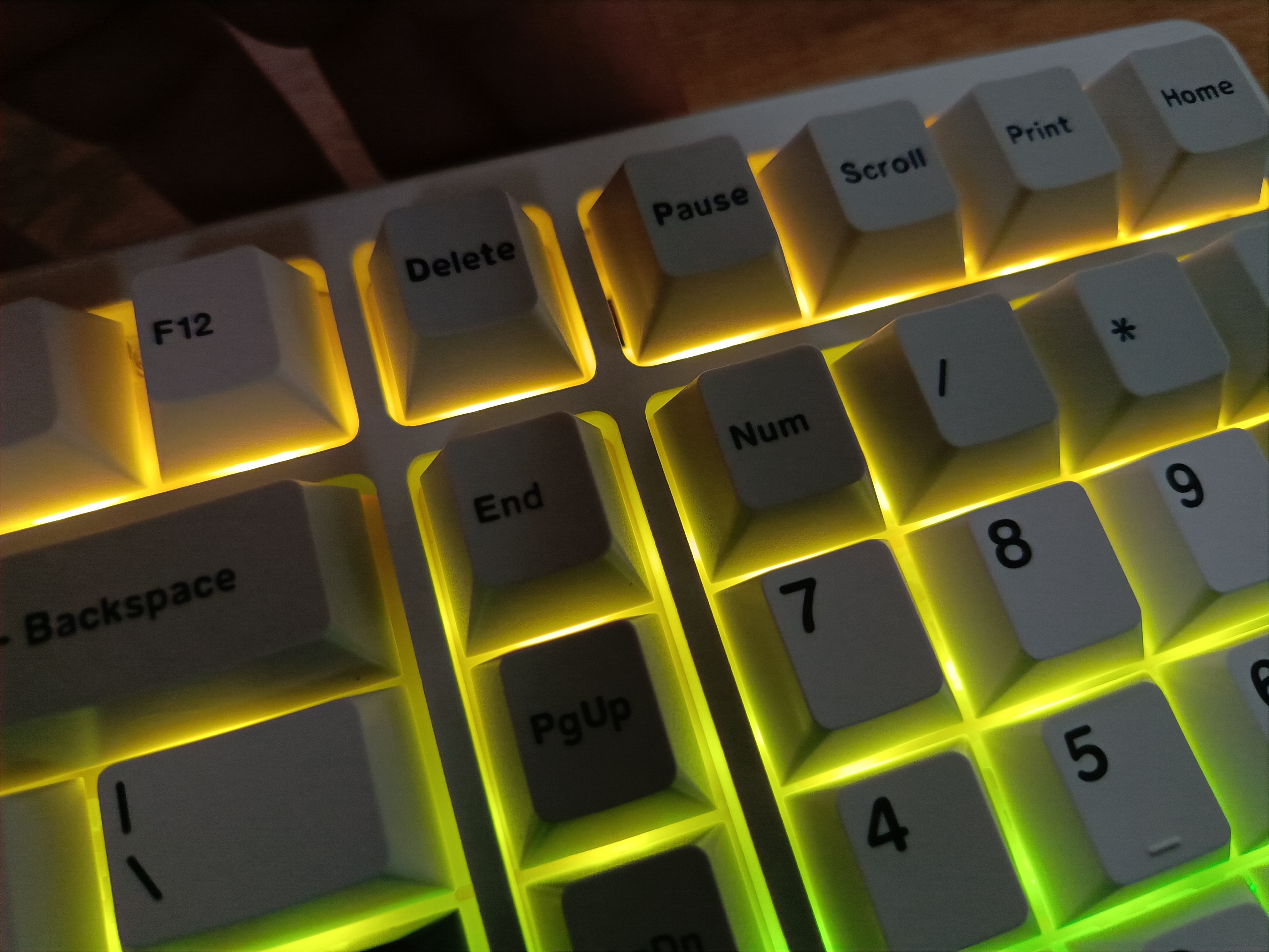 При нажатии клавиши Caps Lock загорается расположенный рядом светодиод. Он становится белым. Клавиши Num Lock и Caps Lock подсвечиваются белым цветом, даже если подсветка выключена.