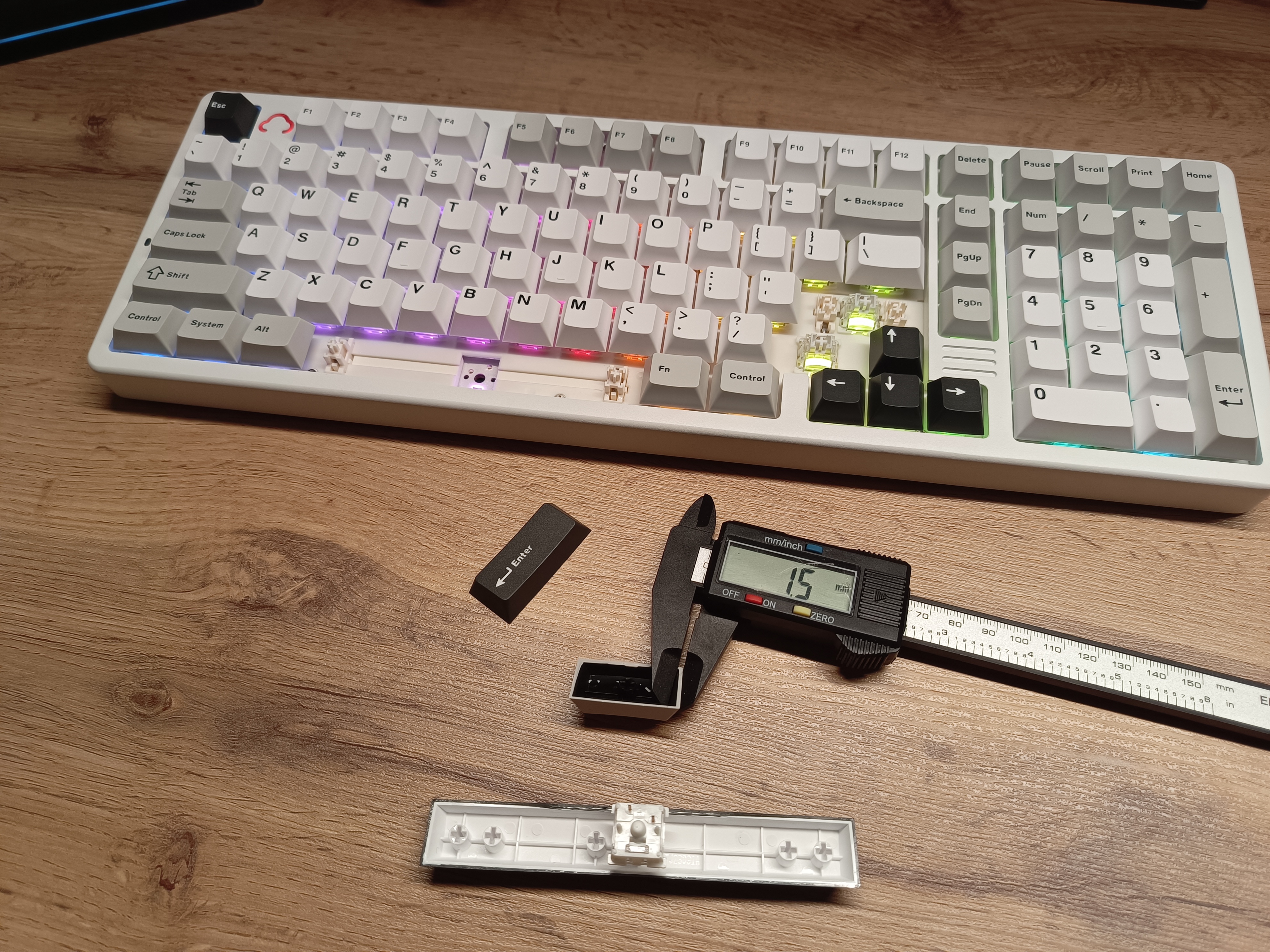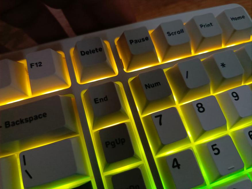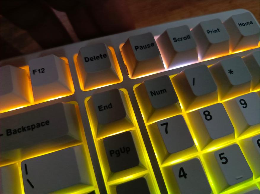 Свитчи смазаны с завода, имеют дополнительный диффузор для подсветки. Кейкапы двойного литья с толщиной стенок в 1,5 мм, что является хорошим показателем.
