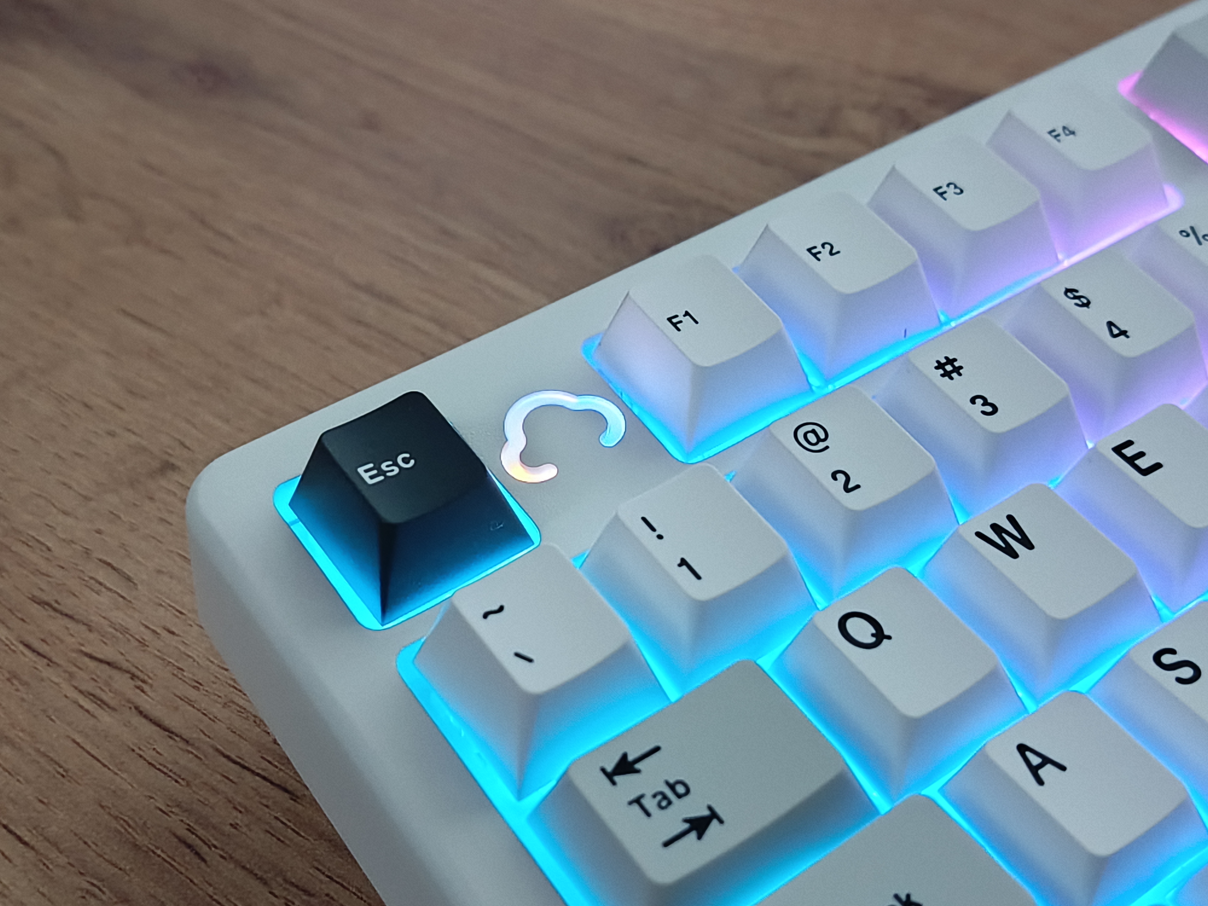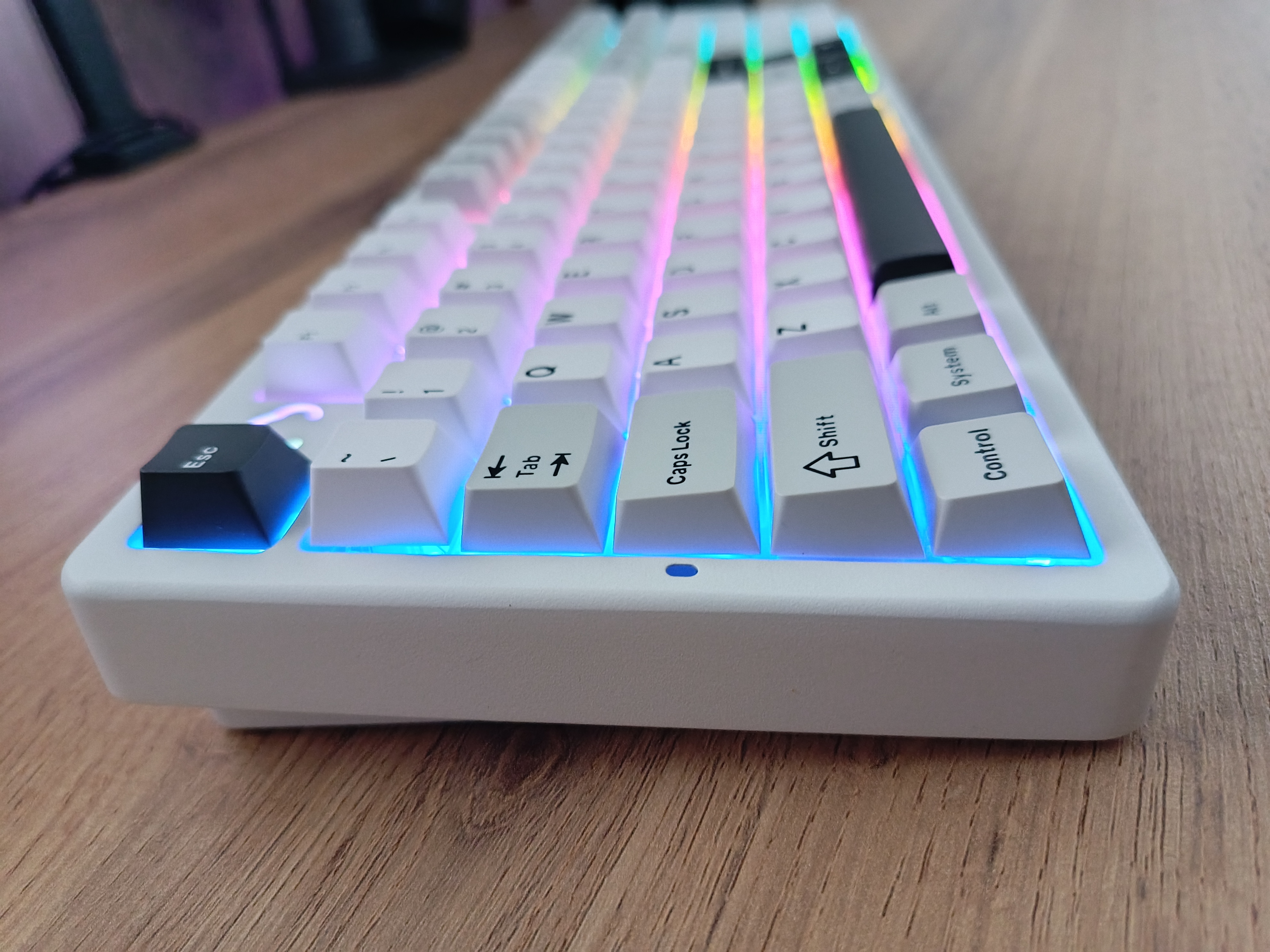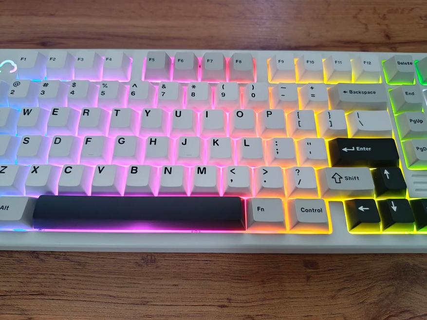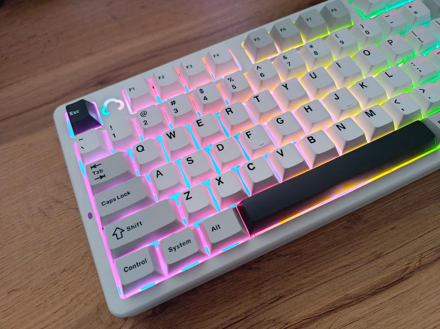 Подсветку можно настроить с помощью горячих клавиш или через VIA-профиль. Яркая, стильная, с южным расположением светодиодов, но, к сожалению, не подсвечивает символы клавиш.