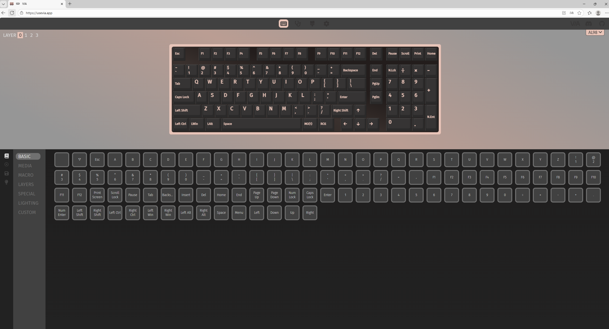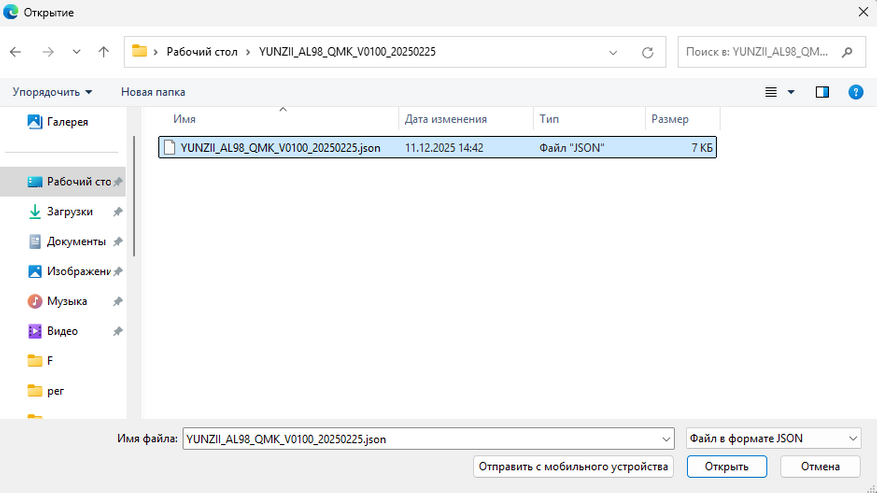 Для настройки клавиатуры существует VIA-профиль. Самый оптимальный браузер — это Edge. С другими возникают проблемы. Открываем сайт компании и загружаем сначала профиль для этой клавиатуры в формате JSON.