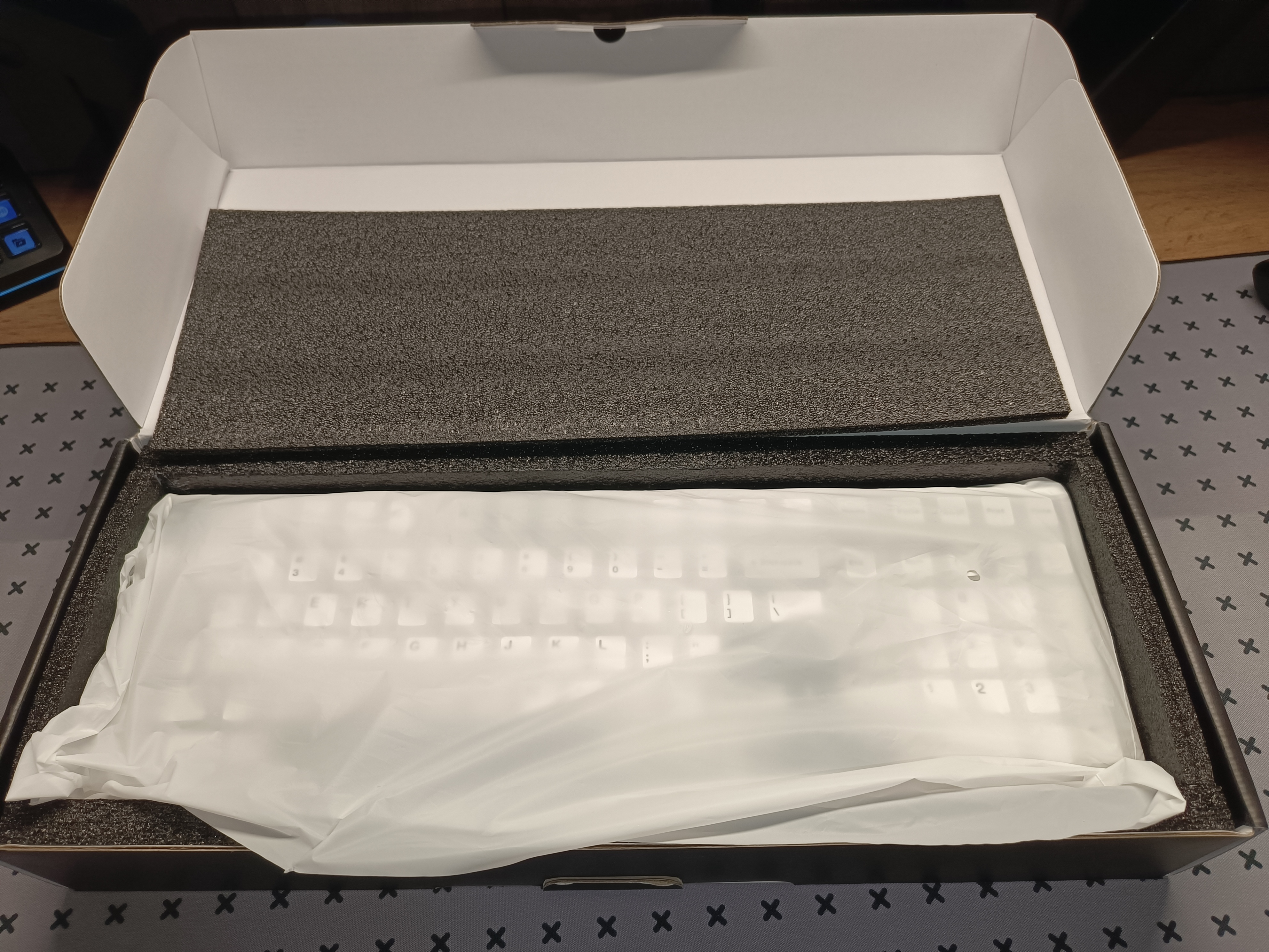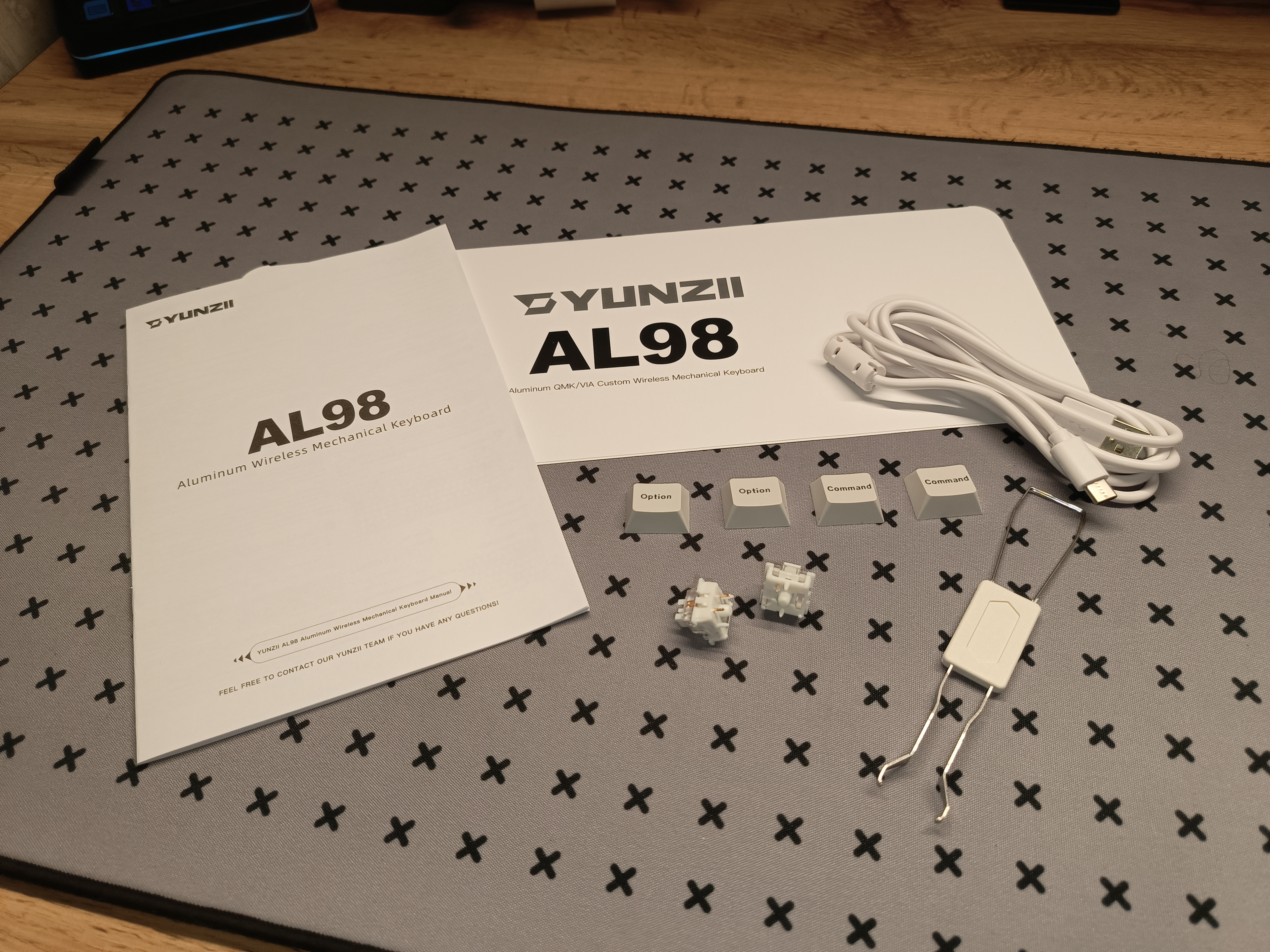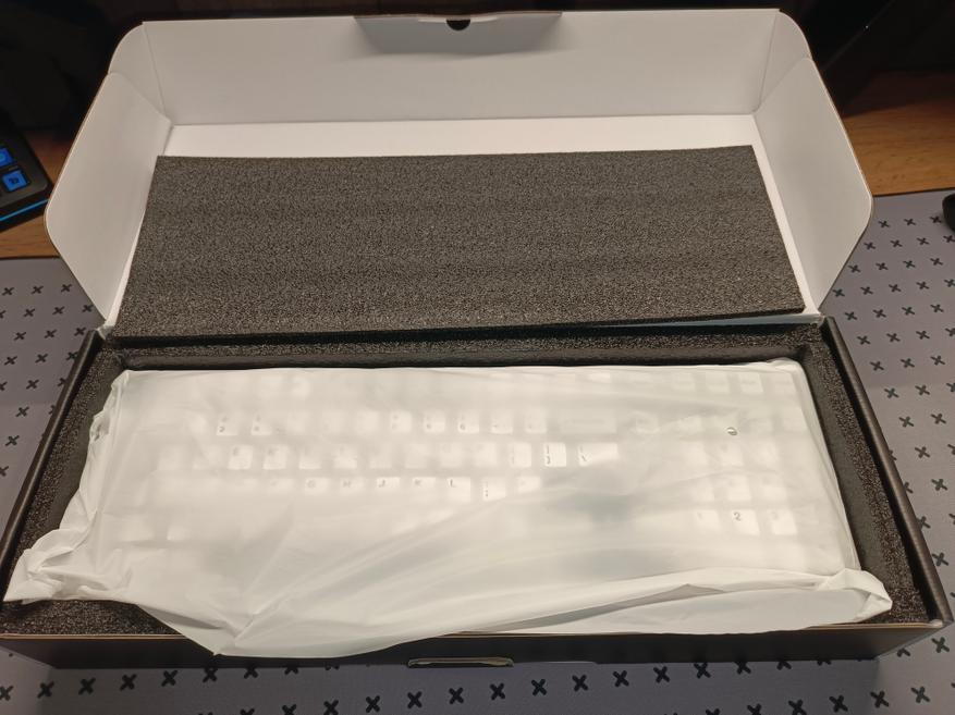 Клавиатура Yunzii AL98 упакована в фирменную упаковку. Внутри всё защищено поролоном, а вот у самой клавиатуры отсутствует пластиковый защитный кожух, как в других моделях этого бренда, только транспортировочный пакет. В комплект поставки входит: