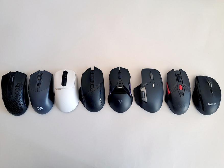 Напоследок, самое широкое сравнение больших беспроводных мышей по внешнему виду.