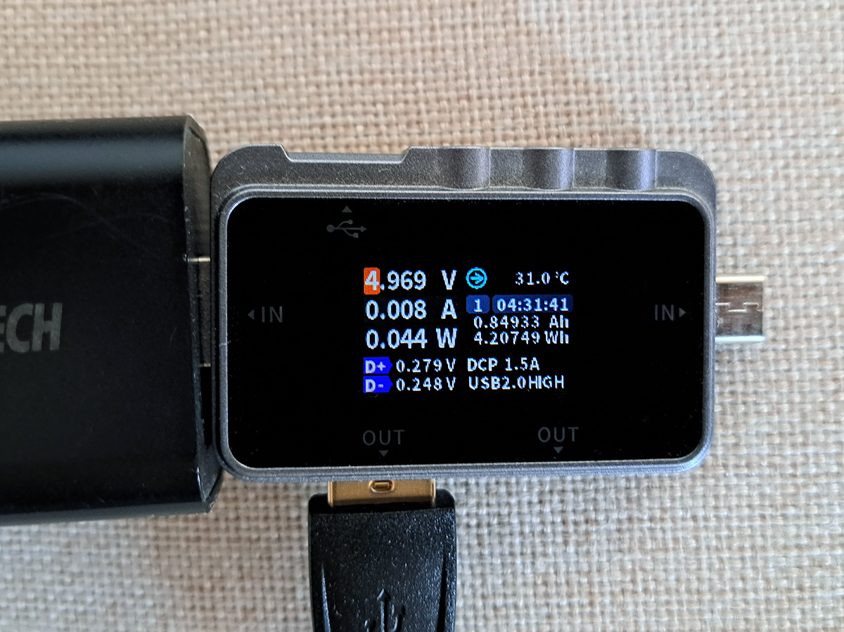 В итоге, мышка заряжалась 4 часа, влилось 850 mAh.