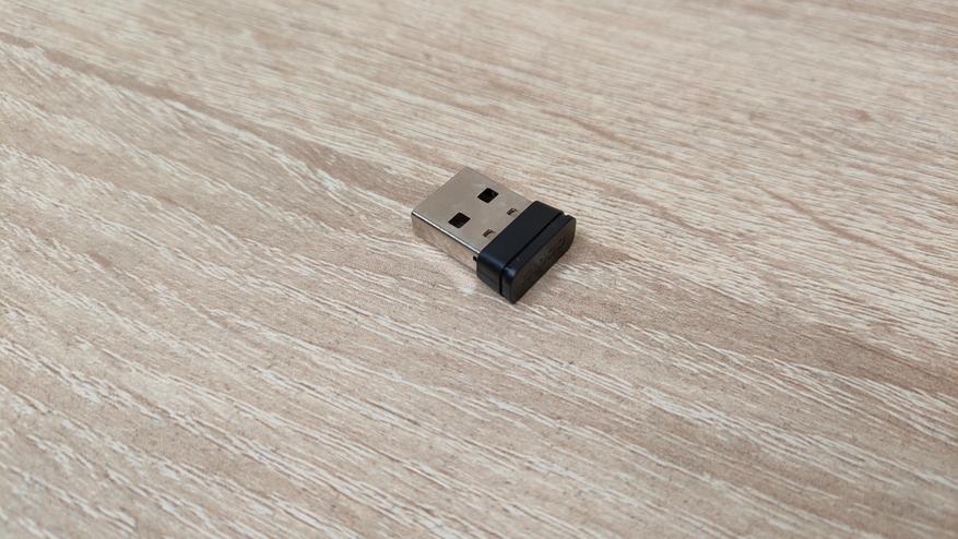 Кабель для подключения зарядки стандартный, как и приемо-передатчик. Последнего деть особо некуда, т.к. нет никакого посадочного места в клавиатуре, то есть он всегда будет где-то лежать, либо должен быть подключен, иначе он просто потеряется.
