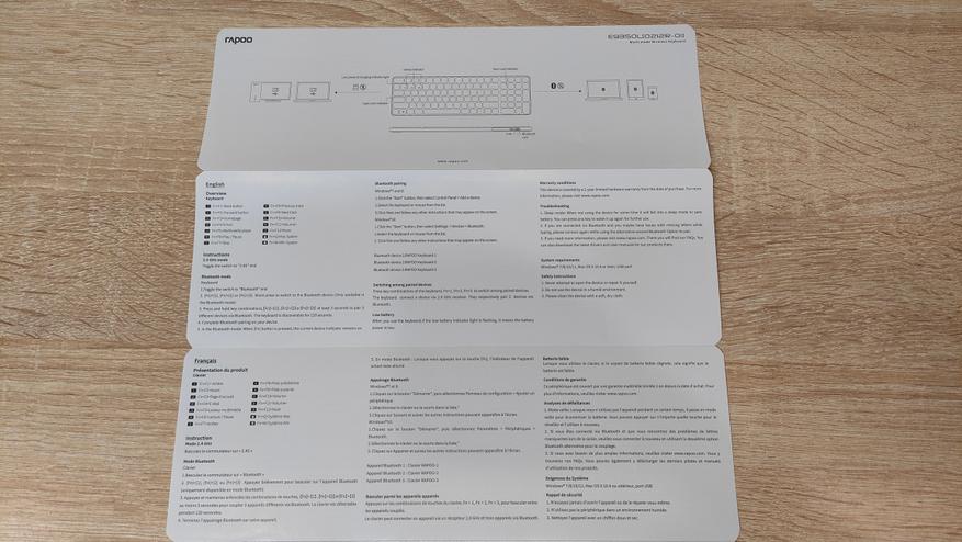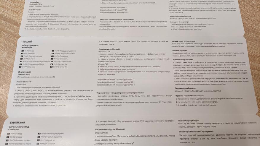 Руководство пользователя переведено на множество языков среди них есть, в том числе и русский. Но там есть полезный список комбинаций, которые отвечают за ту или иную функцию, например это управление мультимедиа, а также есть подробные процедура сопряжения клавиатуры с устройствами.