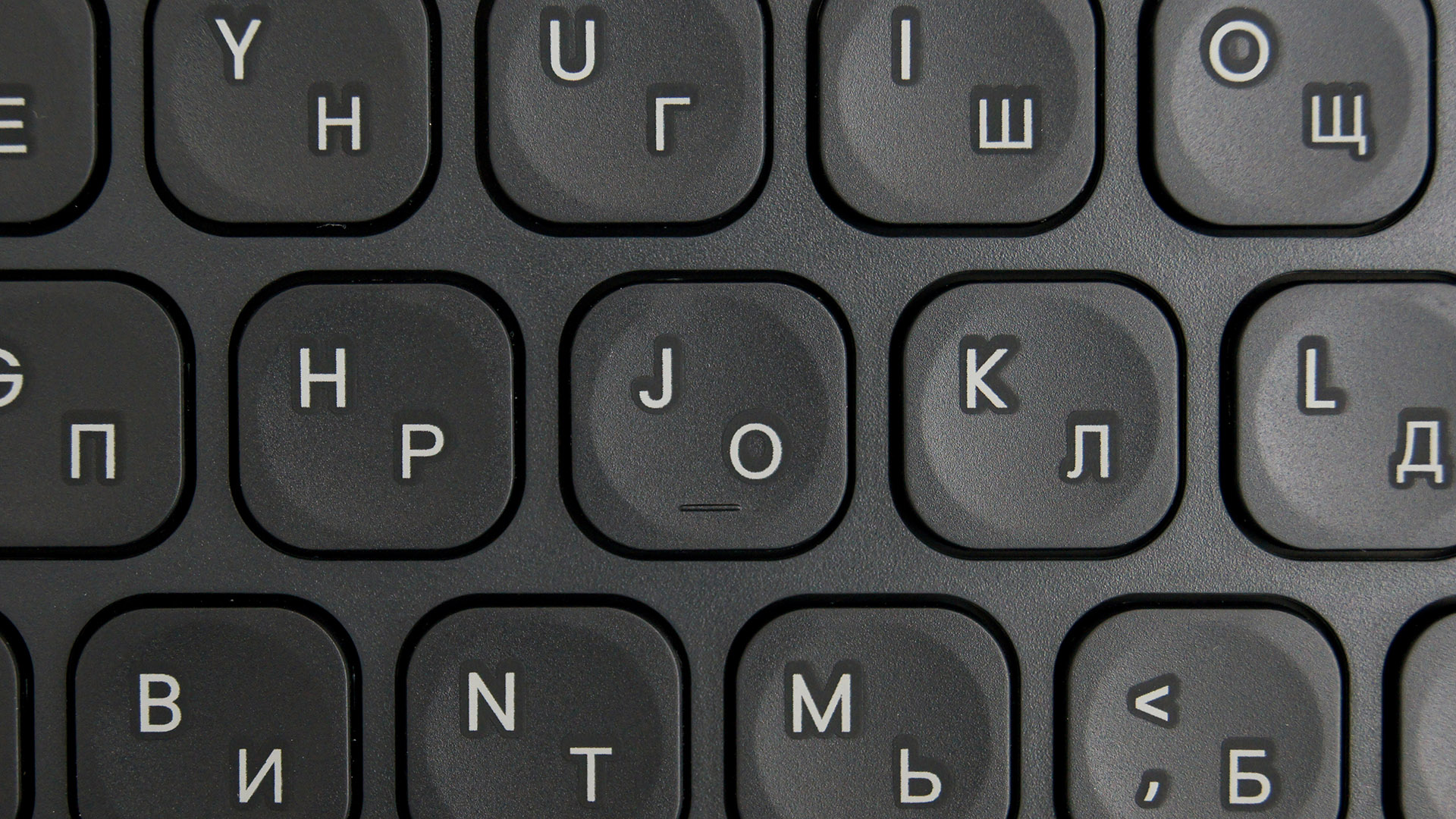 В основе лежит европейский стандарт раскладки (ISO), что подразумевает «двухэтажный» Enter и укороченную левую клавишу Shift, рядом с которой помещен обратный слэш. Кнопка Fn расположилась слева от Ctrl, а справа сохранены клавиши Win и вызова контекстного меню.