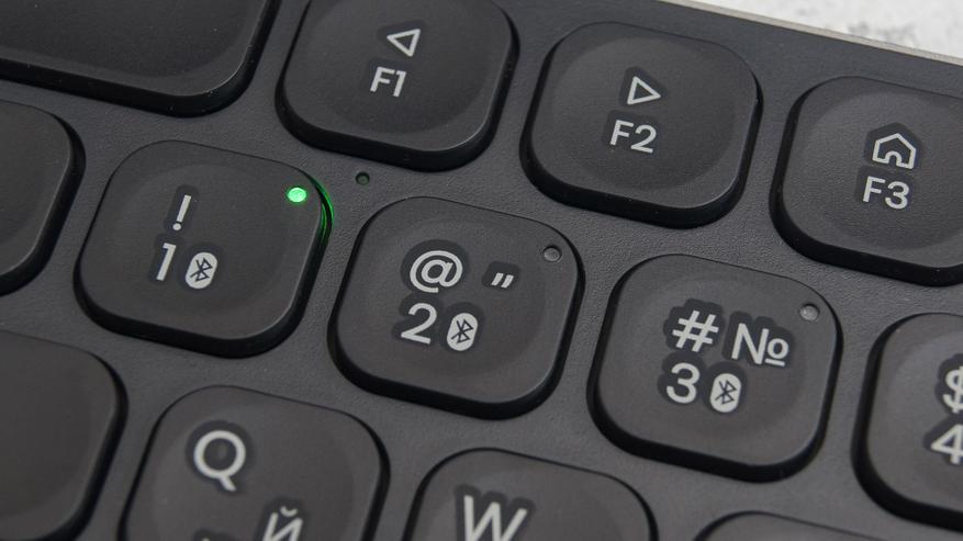 Клавиши «1», «2» и «3» также снабжены точечными диодами, сигнализирующими об активном канале Bluetooth.