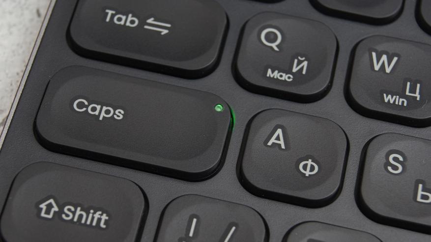 Световые индикаторы CapsLock и NumLock вмонтированы прямо в соответствующие кнопки. Это эргономичное решение, которое экономит пространство. Зеленые светодиоды обладают умеренной яркостью и отлично считываются.
