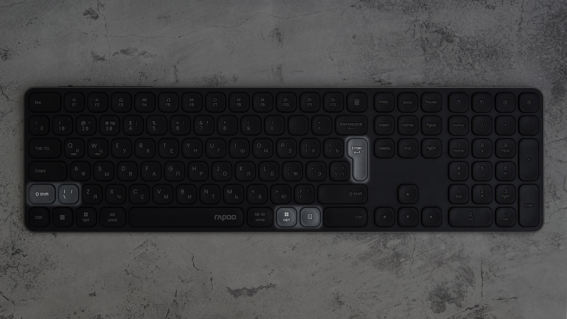 Rapoo E9550L — это отличный вариант беспроводного инструмента для работы, если вам необходим цифровой блок. Модель сочетает в себе эстетику ноутбучных клавиш и надежность монолитного алюминиевого корпуса. Возможность работы с несколькими устройствами одновременно делает её универсальным пультом управления для всей вашей техники.