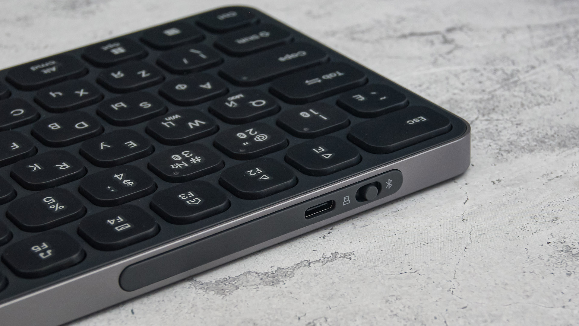 На верхнем ребре, со смещением влево, находится трехпозиционный тумблер (выбор между 2.4 ГГц, выключением и Bluetooth), а также интерфейс USB Type-C для восполнения энергии.