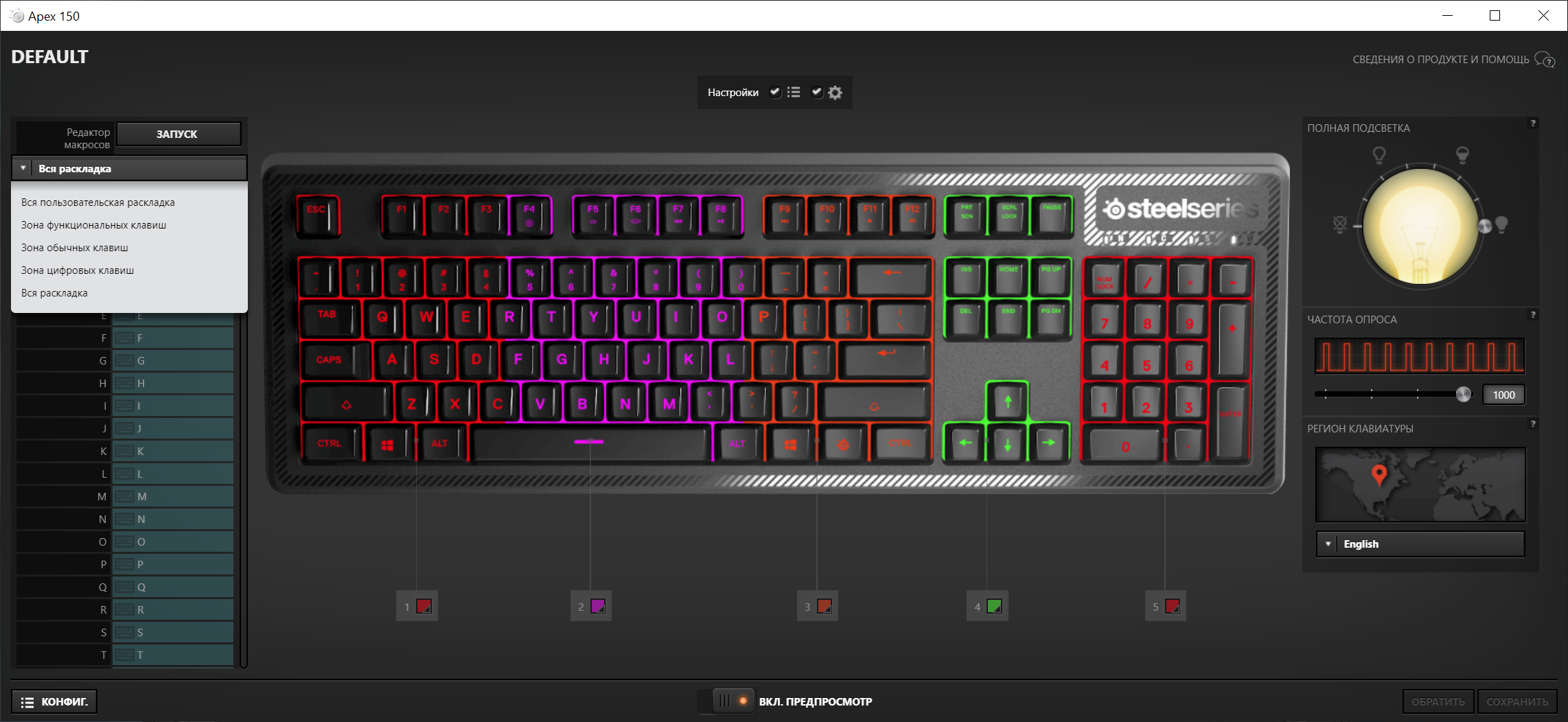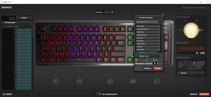 Компания SteelSeries проделала действительно большую работу, создав универсальное программное обеспечение SteelSeries Engine 3, с русскоязычным интерфейсом. Данное ПО работает со всеми устройствами компании, начиная от клавиатур, заканчивая ковриками для мышек. Его можно скачать с официального сайта компании.