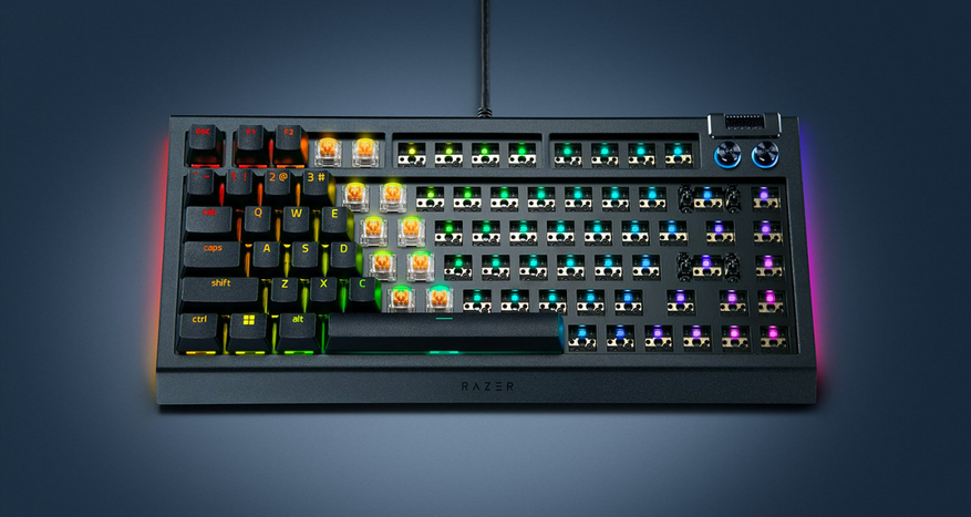 Компания Razer специализирующаяся на разработке и производстве профессионального игрового оборудования представила BlackWidow V4 75% Barebones — свою первую клавиатуру без клавиш, созданную специально для геймеров энтузиастов кастомизации своего игрового оборудования.