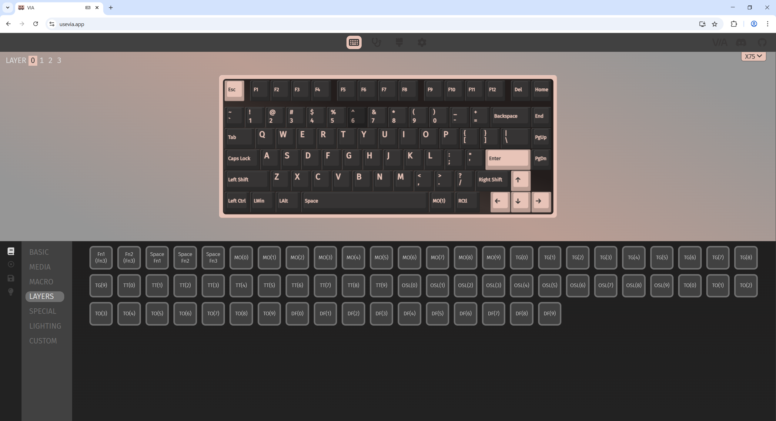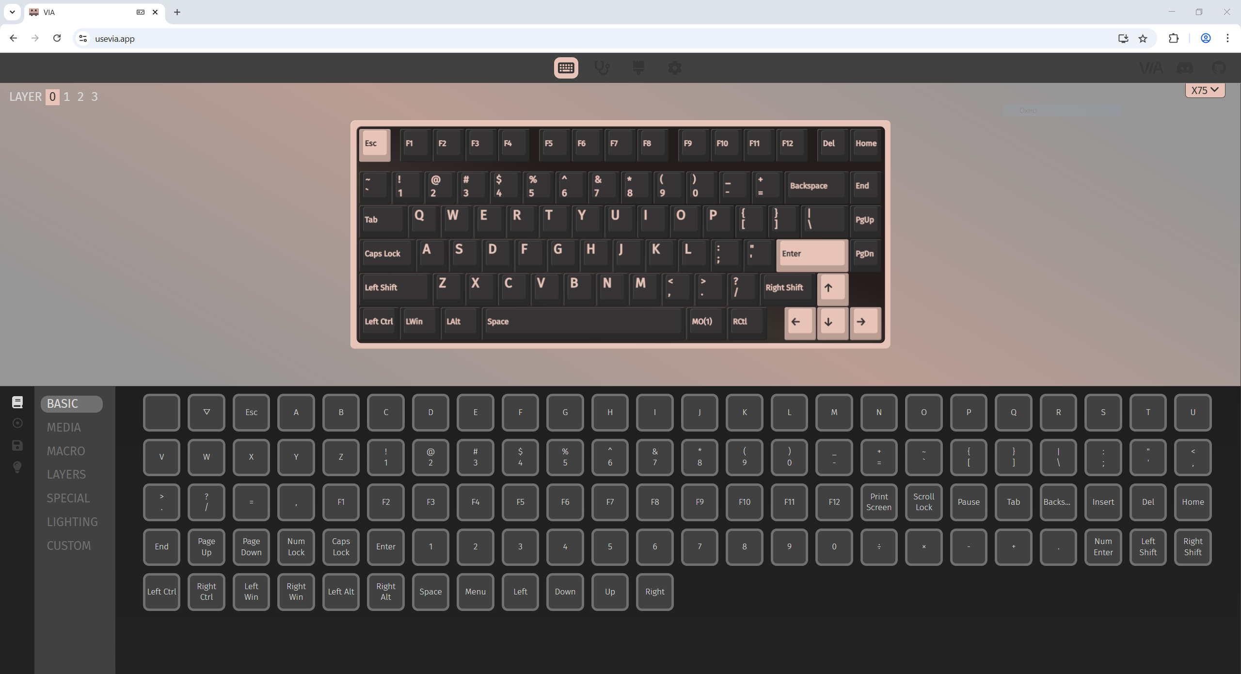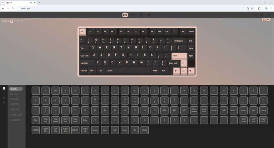 А программа — это не типичная софтина с каким-то скином, а вполне мощный инструмент, так как есть поддержка QMK/VIA. VIA мне больше по душе, так как более дружелюбно, поэтому, я сразу отправился на тестирование именно этого инструмента. В браузере «Opera» у меня оно перестало в последнее время работать, но с хромом никаких проблем нет.