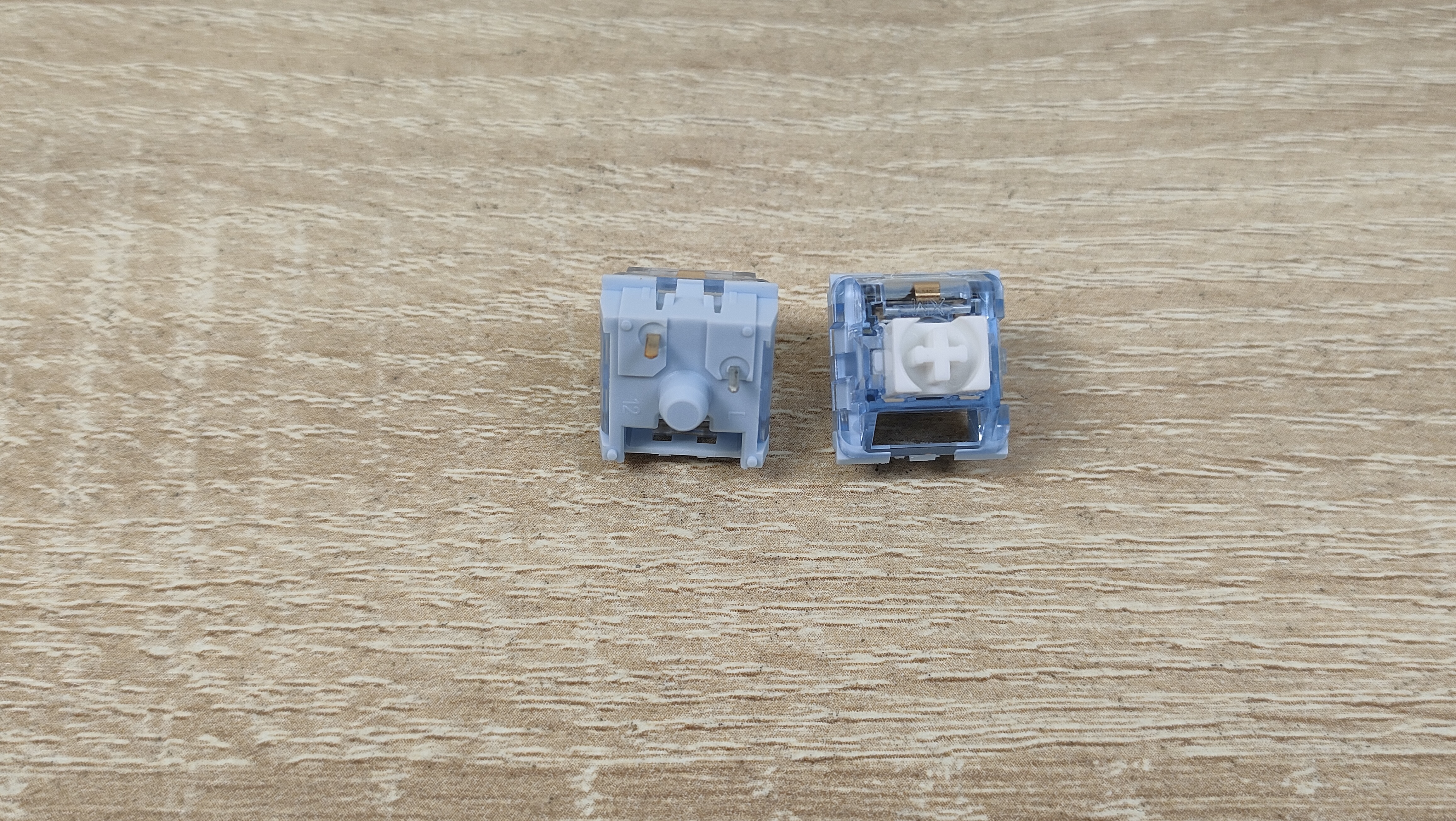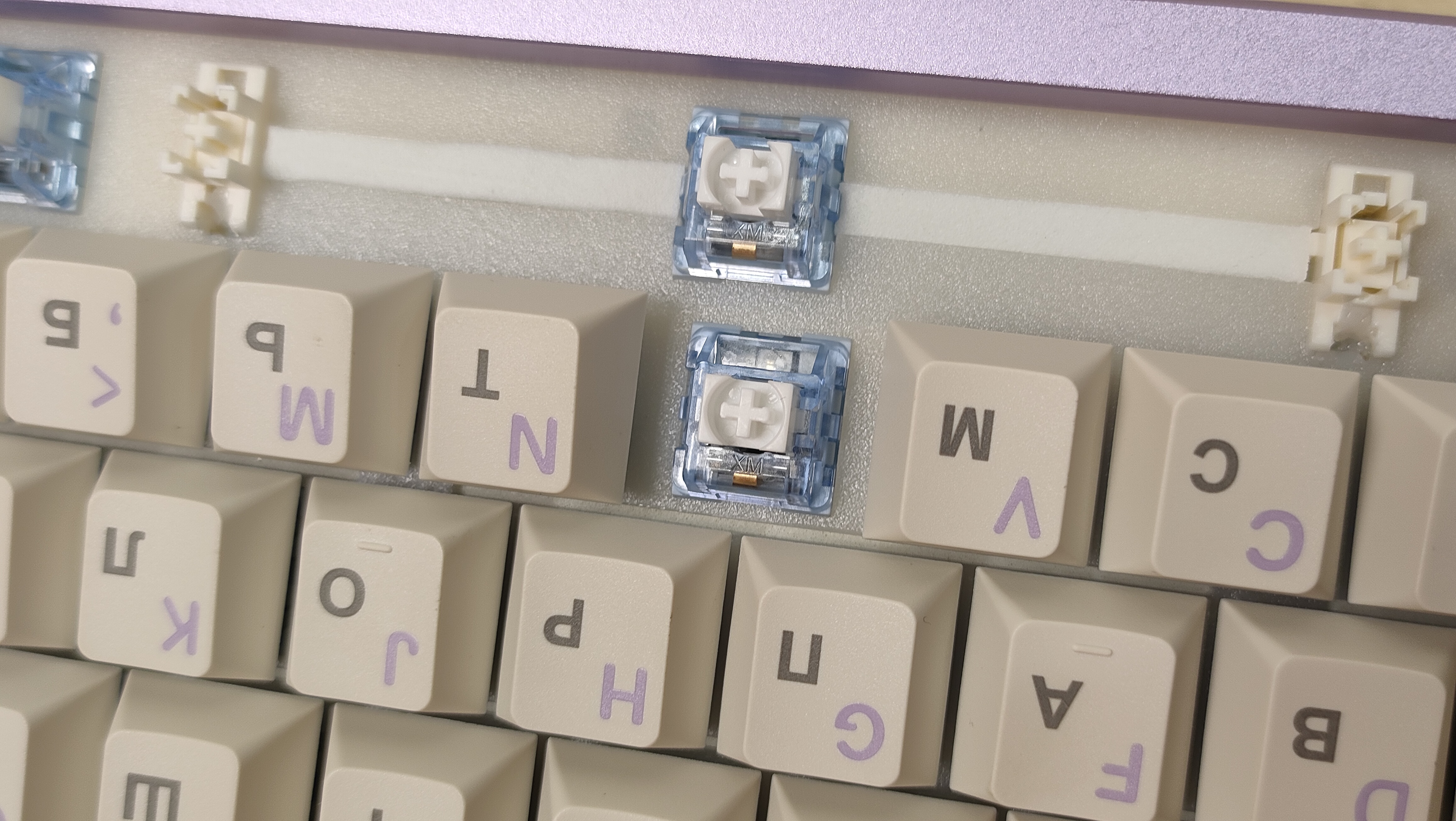 Переключатели имеют маркировку XM, скорее всего Xinmeng, но это один завод, что и Attack Shark, а по цвету могу предположить, что это те же самые Attack Shark Blue Whale: линейный механический тип, усилие 42+-2 грамм до срабатывания, ход до срабатывания от 1,8 мм до 3,8 мм; смазаны с завода; горячая замена есть.