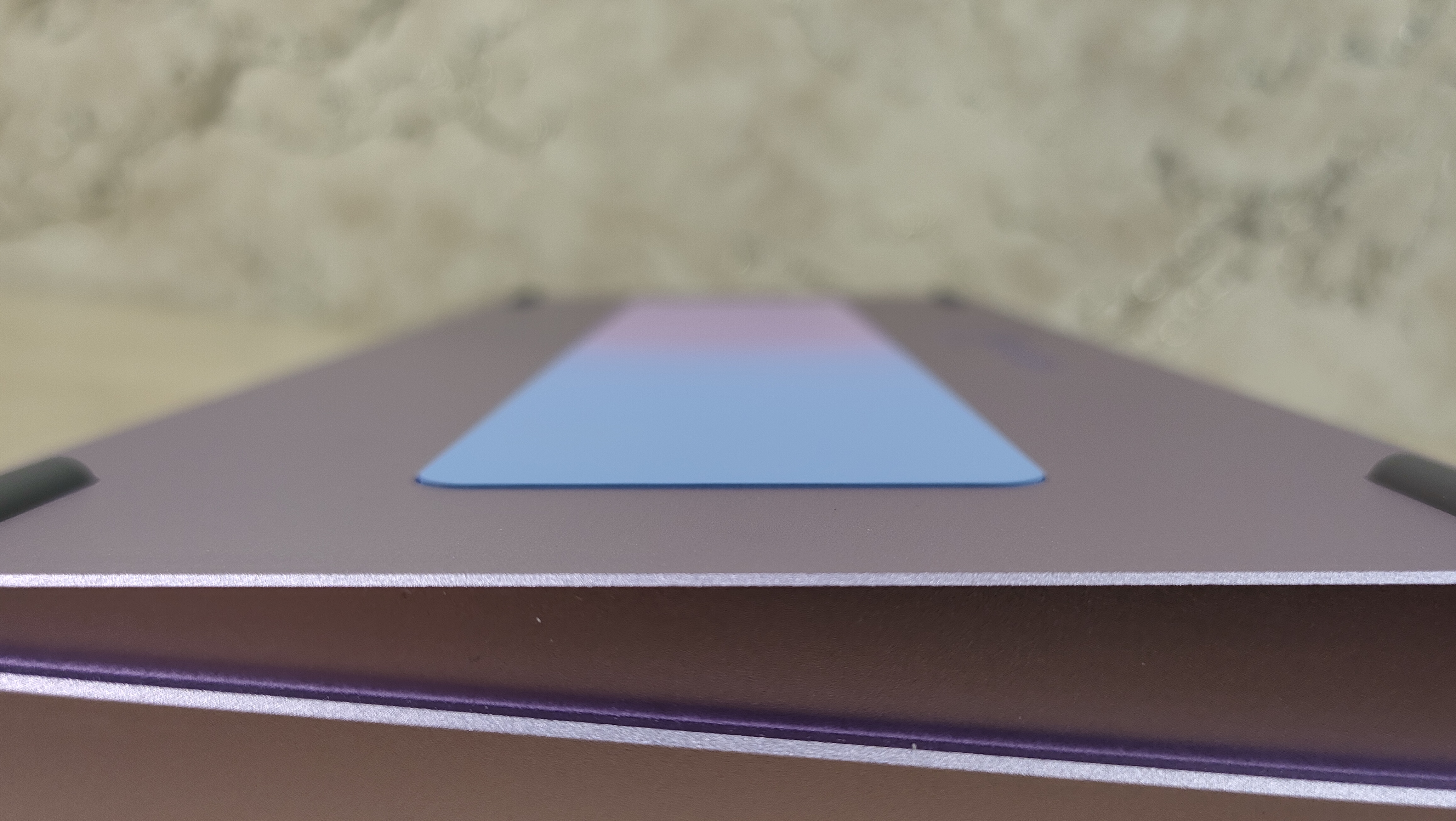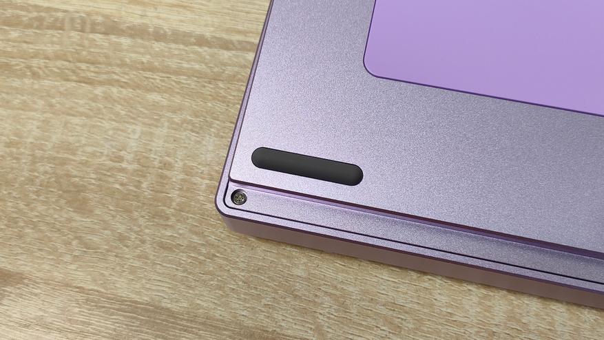 Клавиатура на обороте продолжает радовать своим внешним видом. Все-таки цвет выбран красивый, а как я уже неоднократно говорил, я стараюсь выбирать максимально вырвиглазные цвета, либо хотя бы, как в этом случае, любой не ч/б вариант. В общем, цвет красивый, повторюсь еще раз. Но клавиатура в алюминии, а значит, как часто это бывает, у нее нет возможности менять угол наклона. Кроме того, на дне нет наклейки и каких-либо надписей. Я тоже «топлю» за то, чтобы надписей не было, а наклейку просто вкладывали.