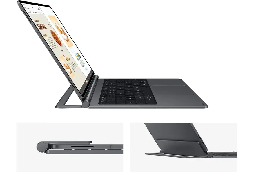 Конструкция Pro Keyboard предусматривает подключение к планшету через контактный разъём Pogo Pin, расположенный на нижней грани Galaxy Tab S11 Ultra. Такой способ соединения исключает необходимость установки в клавиатуру собственного аккумулятора — питание поступает непосредственно от планшета. Данное техническое решение также обеспечивает автоматическую синхронизацию режимов сна и пробуждения между двумя устройствами.