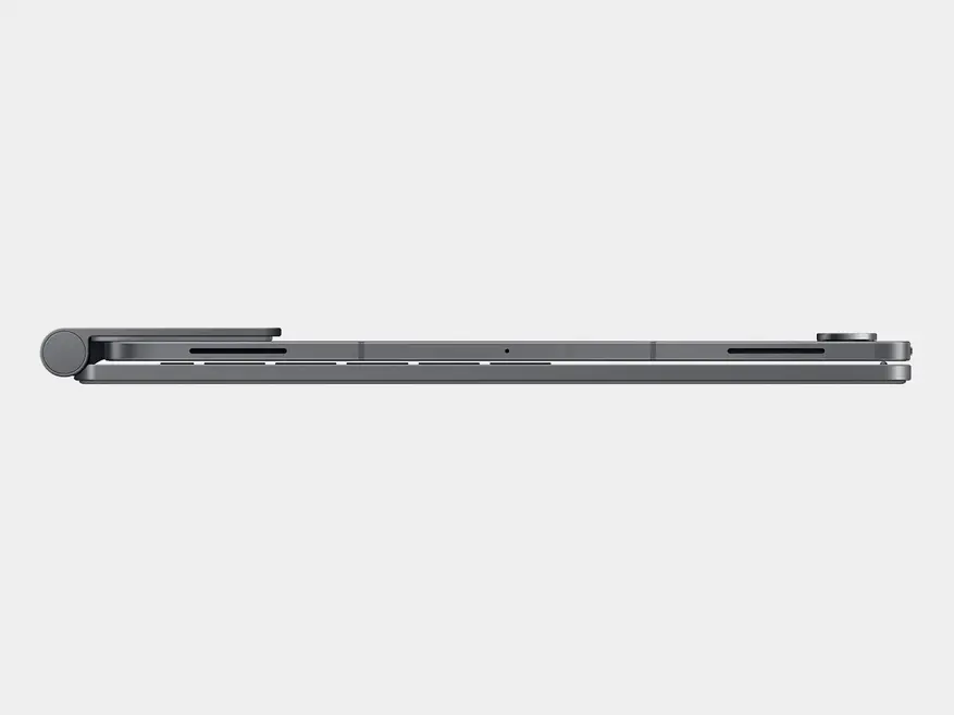 Корпус нового аксессуара выполнен из цельного алюминиевого сплава и оснащен шарнирным механизмом из усиленного металла. На задней панели предусмотрена встроенная откидная подставка, позволяющая фиксировать планшет под разными углами наклона. Подключение клавиатуры осуществляется физическим способом через магнитные контакты Pogo Pin. Этот тип аппаратного соединения исключает использование протокола Bluetooth: передача данных и питание клавиатуры осуществляются напрямую от аккумулятора планшета. Аксессуар поддерживает функцию автоматического управления питанием экрана: дисплей активируется при открытии крышки и переходит в спящий режим при закрытии. Модель представлена в сером и серебристом цветах. Масса клавиатуры составляет около 650 граммов.