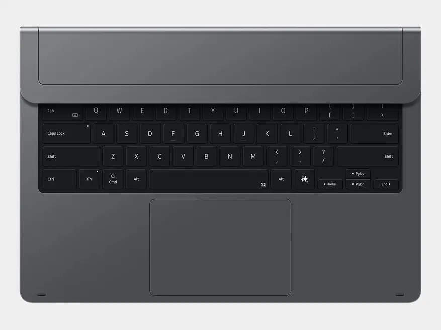 Печатный блок включает 80 клавиш с нестандартной раскладкой, адаптированной под экосистему производителя. В нижнем ряду расположена отдельная аппаратная кнопка для запуска режима Samsung DeX, который переводит интерфейс планшета в многооконный настольный формат. Также на панели есть клавиша Galaxy AI для прямого вызова системных функций искусственного интеллекта и три программируемые кнопки для назначения пользовательских команд. Площадь сенсорной панели (трекпада) увеличена на 14,6 % по сравнению с предыдущими моделями серии Book Cover.