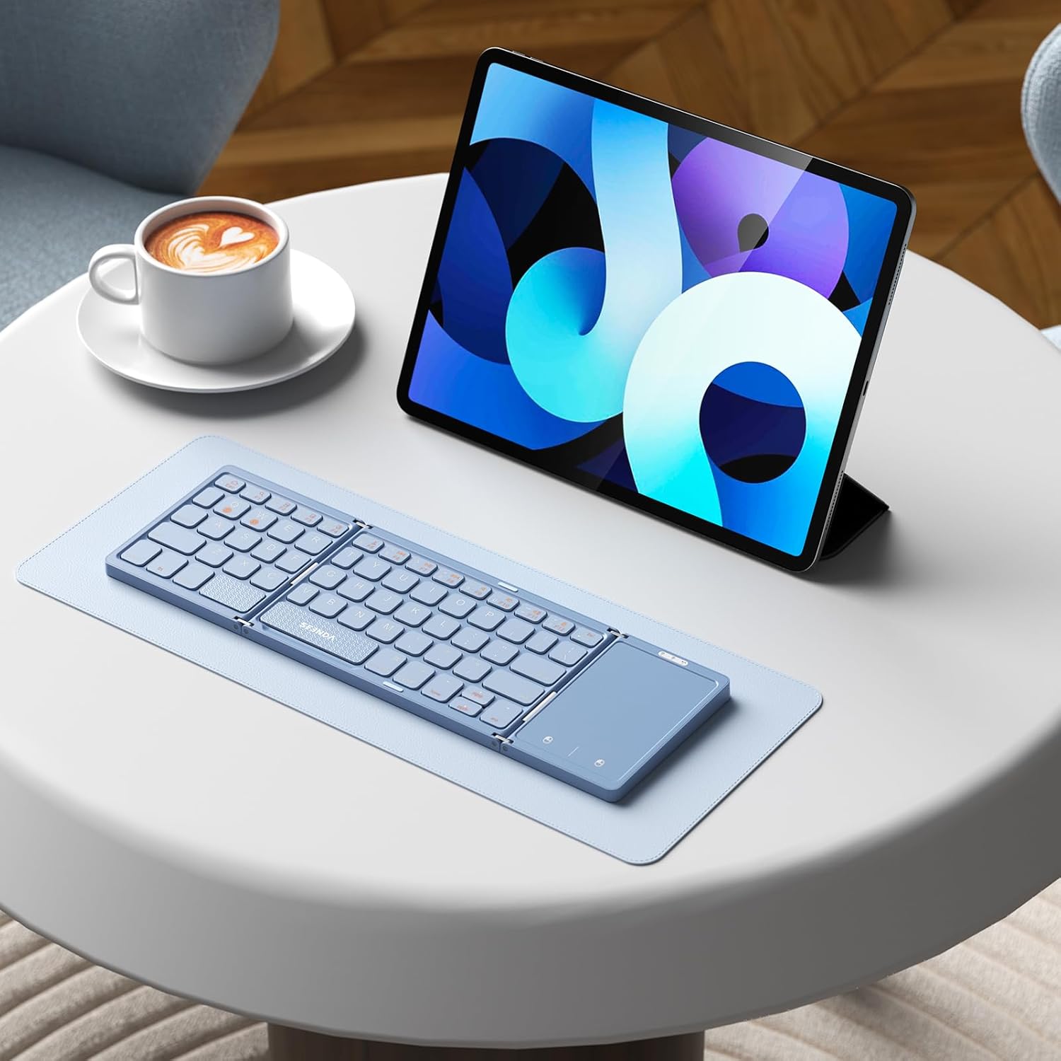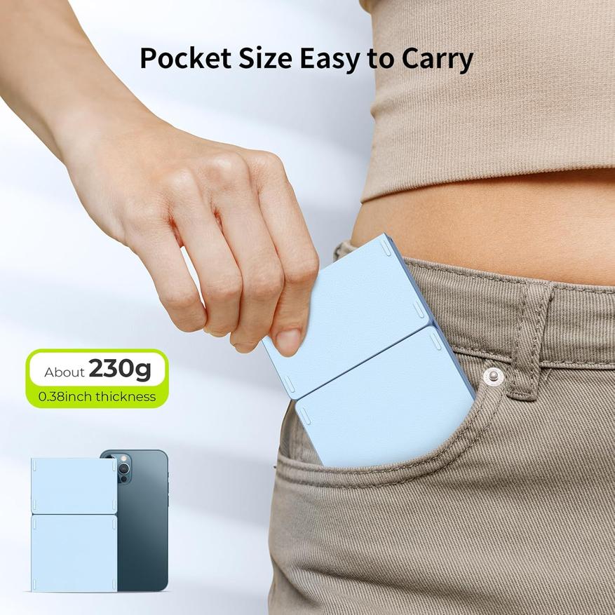 Клавиатура выполнена в трёхсекционном дизайне с размерами 2 x 9,8 x 15,2 см в сложенном виде. Тачпад занимает треть ширины устройства и оснащён двумя кнопками. Поддержка жестов доступна на устройствах с iOS 13 и выше. Подключение осуществляется через Bluetooth 5.1, обеспечивающий связь с двумя устройствами одновременно.