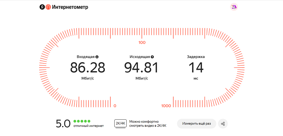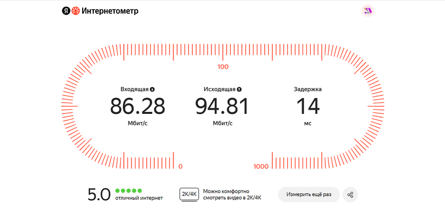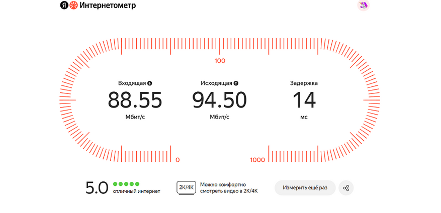 Первым делом проверил скорость Ethernet соединения, сравнив беспроводное и через станцию. Результаты получились сопоставимы, так как роутер находился рядом, а провайдер хитро гарантирует скорость до 100 Мбит/с.