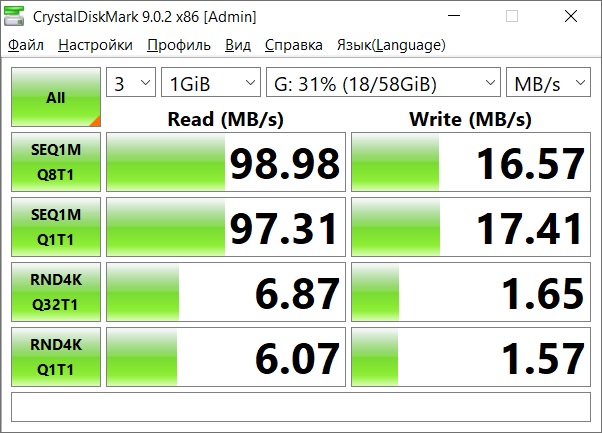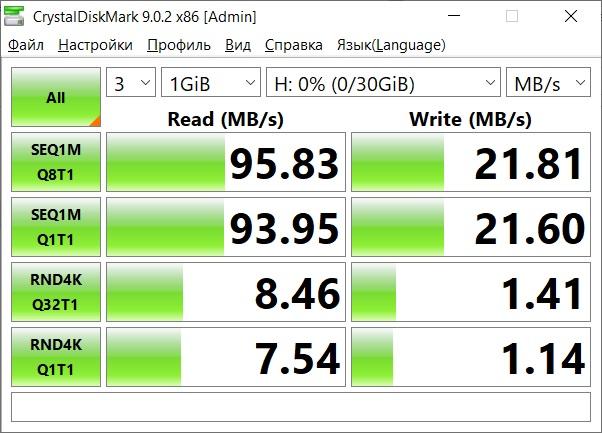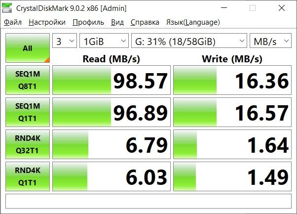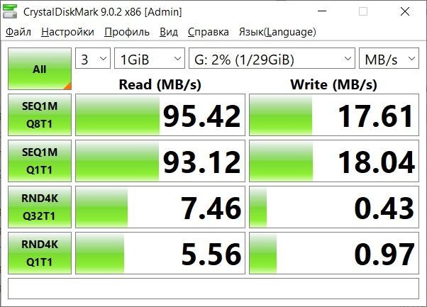 Порты USB-A 3.2 Gen1 или версии 3.0 не режут скорость передачи данных, показав ту же скорость, что и порт ноутбука. При заявленной скорости 5 Гбит/с тут все может ограничиваться только возможностями самого внешнего накопителя.