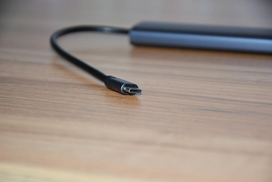 Но все это было бы плохо реализуемо, если бы не соединение с ноутбуком (ПК) по Type-C. Корпус коннектора также металлический и окрашен в цвет корпуса станции.
