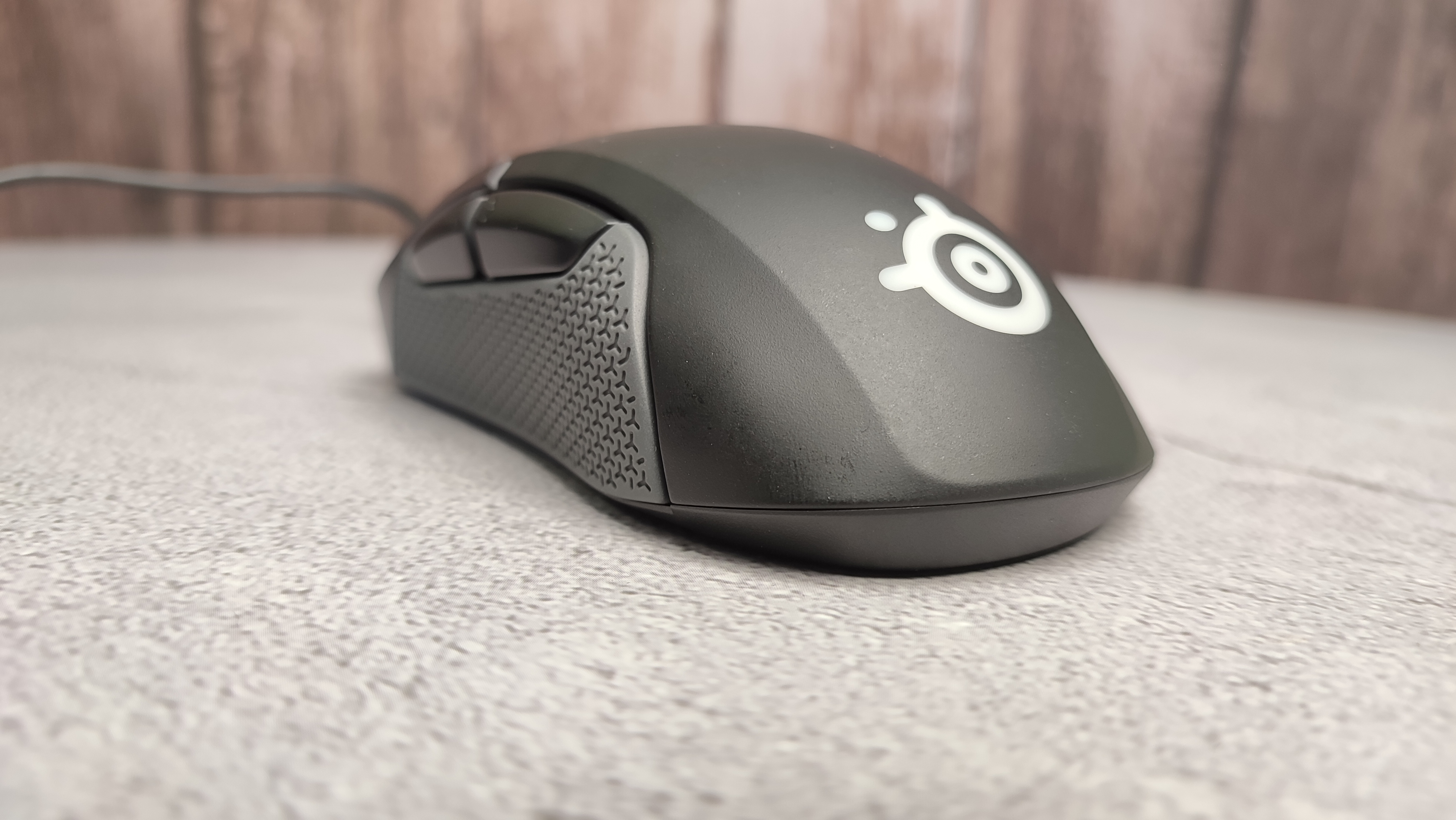 Колесико имеет очень мягкий и легкий ход. Клик - отчетливый, средней громкости. Steelseries использует специальные насечки на силиконовом покрытии. Дальше колесика находится кнопка смены dpi, ход небольшой, достаточно тугой, звук кликания ощутим.