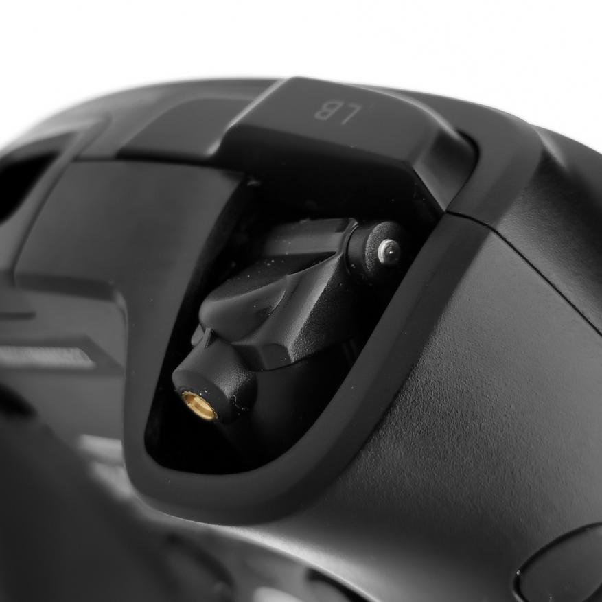 У штатных стиков шапки вогнутые, а у запасных выпуклые. Шапки крепятся к основанию стика при помощи винтовой резьбы. Все элементы крепления изготовлены из металла. Кабельдовольно толстый и жёсткий. Длина кабеля три метра. Оплётка тканевая. Для подключения кабеля к геймпаду используется проприетарный micro USB разъём. Утопленная конструкция разъема повышает его надёжность при сильных боковых нагрузках. Беспроводного подключения не предусмотрено. Почему? Видимо причина кроется в сложностях с лицензированием. На рынке сейчас попросту нет беспроводных контроллеров для Xbox от сторонних производителей, если не брать во внимание кастомные модели.