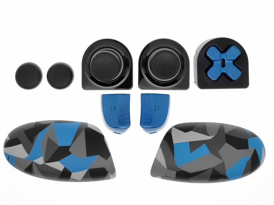 Вместе с геймпадом был заказан ещё набор с аксессуарами, в который входят: накладки на рукоятки (от стоковых они отличаются не только цветом, но и тактильно), курки, шапки для стиков, модуль с крестовиной и два модуля со стиками. Все мои геймпады полностью чёрные, поэтому с помощью данного набора я пытался слелать Thrustmaster Eswap более ярким. Thrustmaster предлагают много разных аксессуаров для Eswap X Pro Controller. В фирменном магазине можно найти: штатные и уменьшенные стики, обычный и круглый D-Pad, разнообразные накладки на ручки, курки, кабель и чехол. Модули для Thrustmaster Eswap Pro Controller совместимы с Thrustmaster Eswap X Pro Controller.