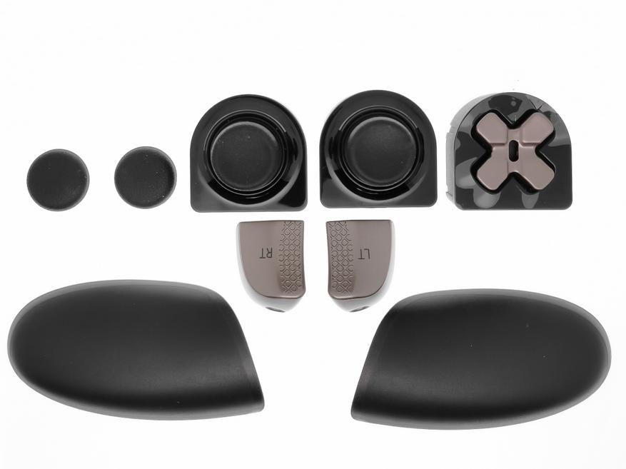 Для изъятия триггера нужно с помощью комплектной отвёртки открутить один винт. С помощью той же самой отвёртки, но другим концом, вытаскивается модуль крестовины. При должной сноровке модуль крестовины можно вытащить и пальцами. Для этого нужно ногтями подцепить за края кнопок и потянуть. Накладки на рукоятки удерживаются на геймпаде при помощи магнитов. Снимать накладки не очень удобно, но и не сложно.