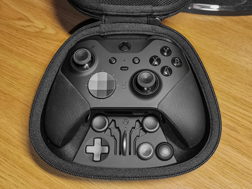 Вместе с геймпадом в комплект поставки входят: две сменных шапки для стиков, кабель, отвёртка, мешок и различные бумаги.