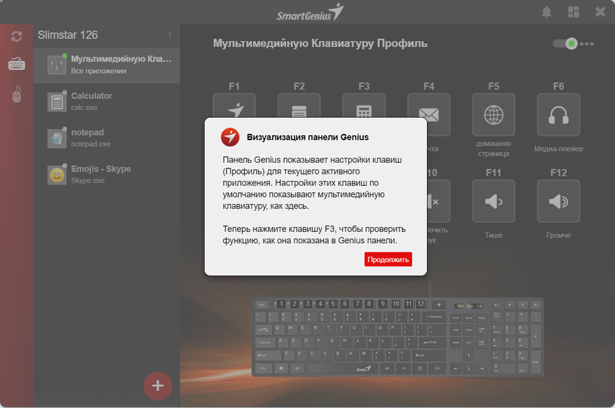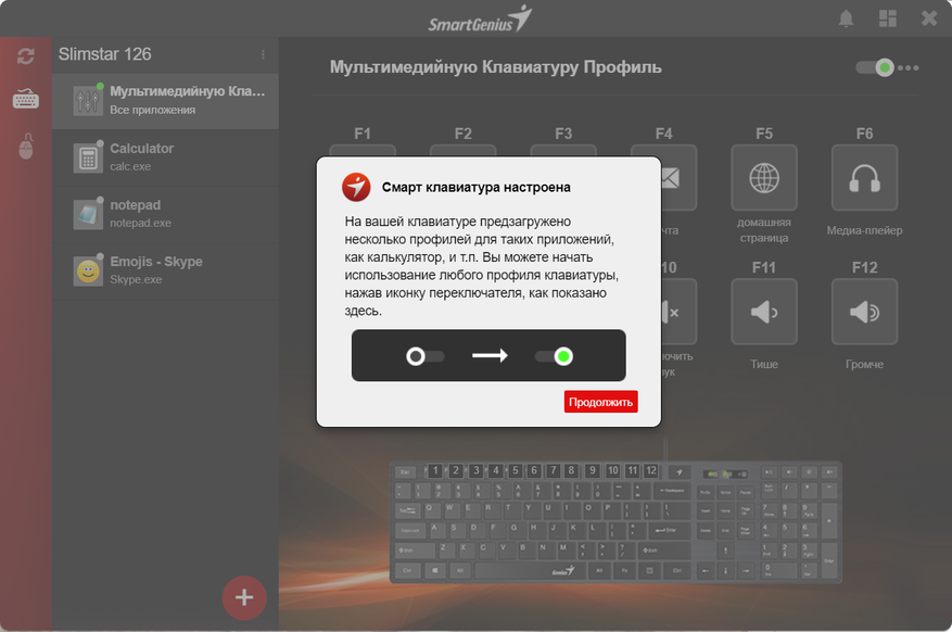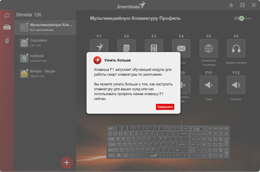 Далее продолжается обучение работе с программой. В SmartGenius есть несколько предустановленных профилей настройки клавиатуры.
