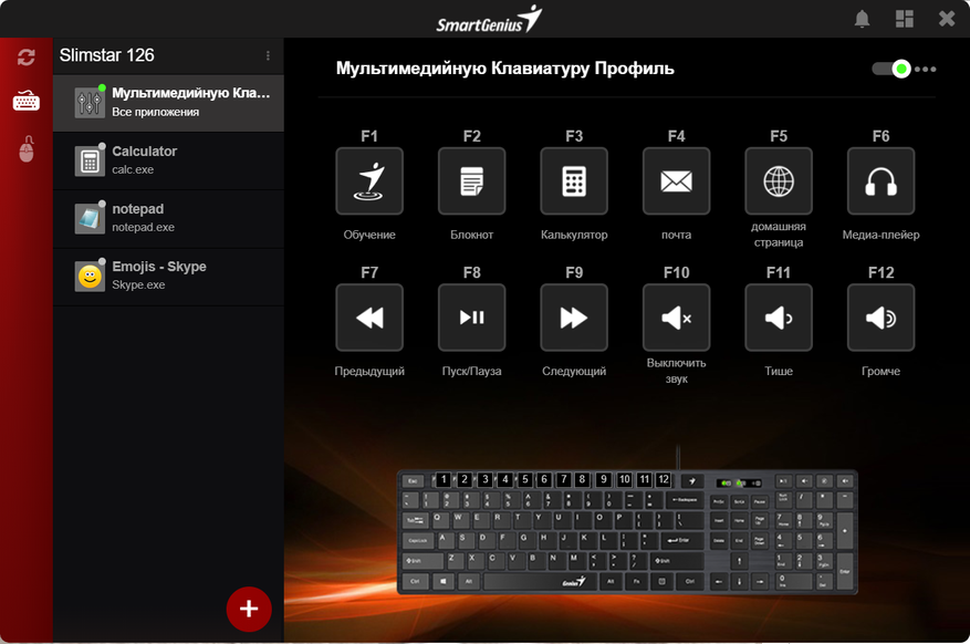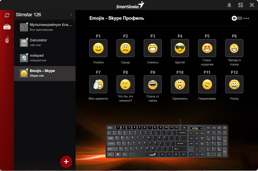 Клавиатура поддерживает фирменное ПО SmartGenius, ну или наоборот. Скачать его можно по ссылке. После скачивания и установки, можем перейти к настройке нашей клавиатуры, а точнее, доп. клавиш.