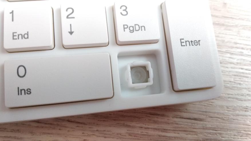 Высота верхней части клавиши 3,2 мм. Все небольшие клавиши имеют минимальный люфт и не имеют звука при постукивании. Широкие клавиши имеют чуть больший люфт и негромкий щелчок, производимый скобой внутри клавиши. Дискомфорта это совершенно не доставляет.