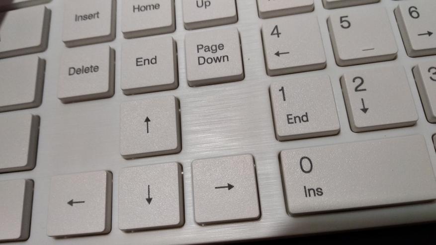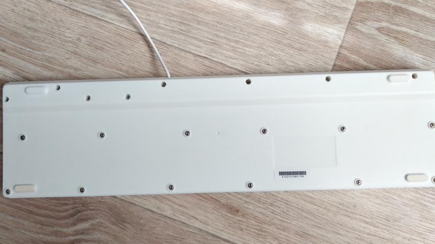 Перед нами компактная полноразмерная мембранная клавиатура, островного типа, с цифровым блоком. Цвет белый, все символы и знаки изображены в черном цвете. Они нанесены методом лазерной печати, обычно такое покрытие более выносливое к истиранию. Читаемость отличная.