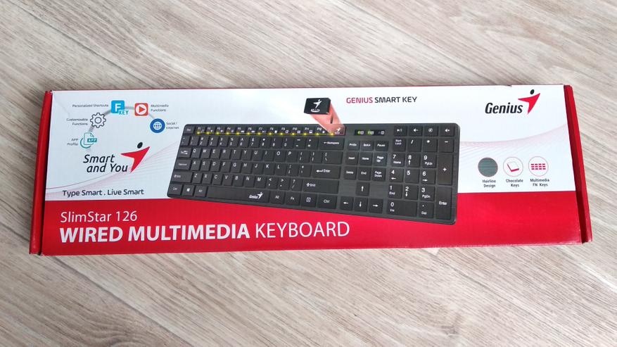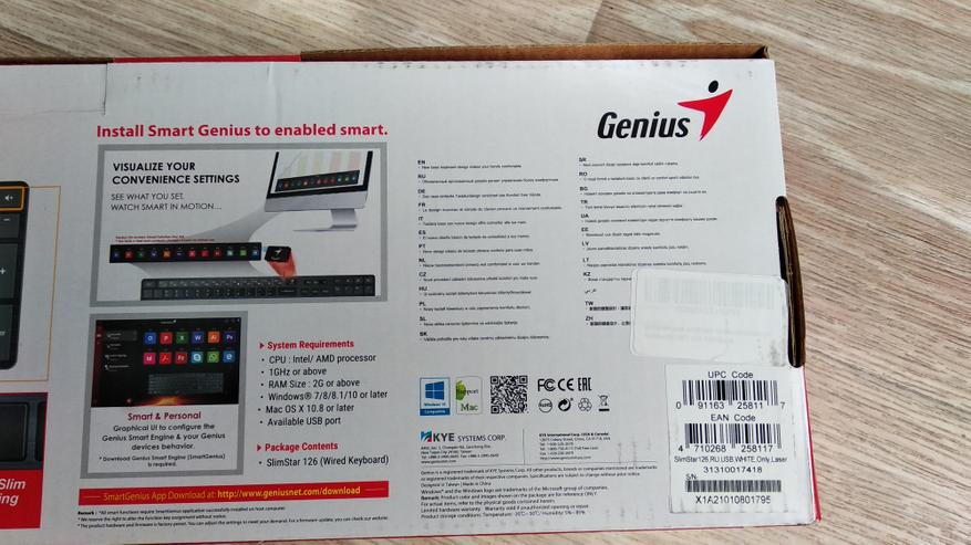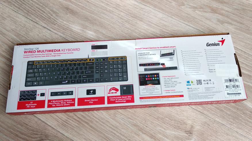 Коробка, в которую упакована клавиатура, выполнена в классических для Genius цветах – бело-красных.