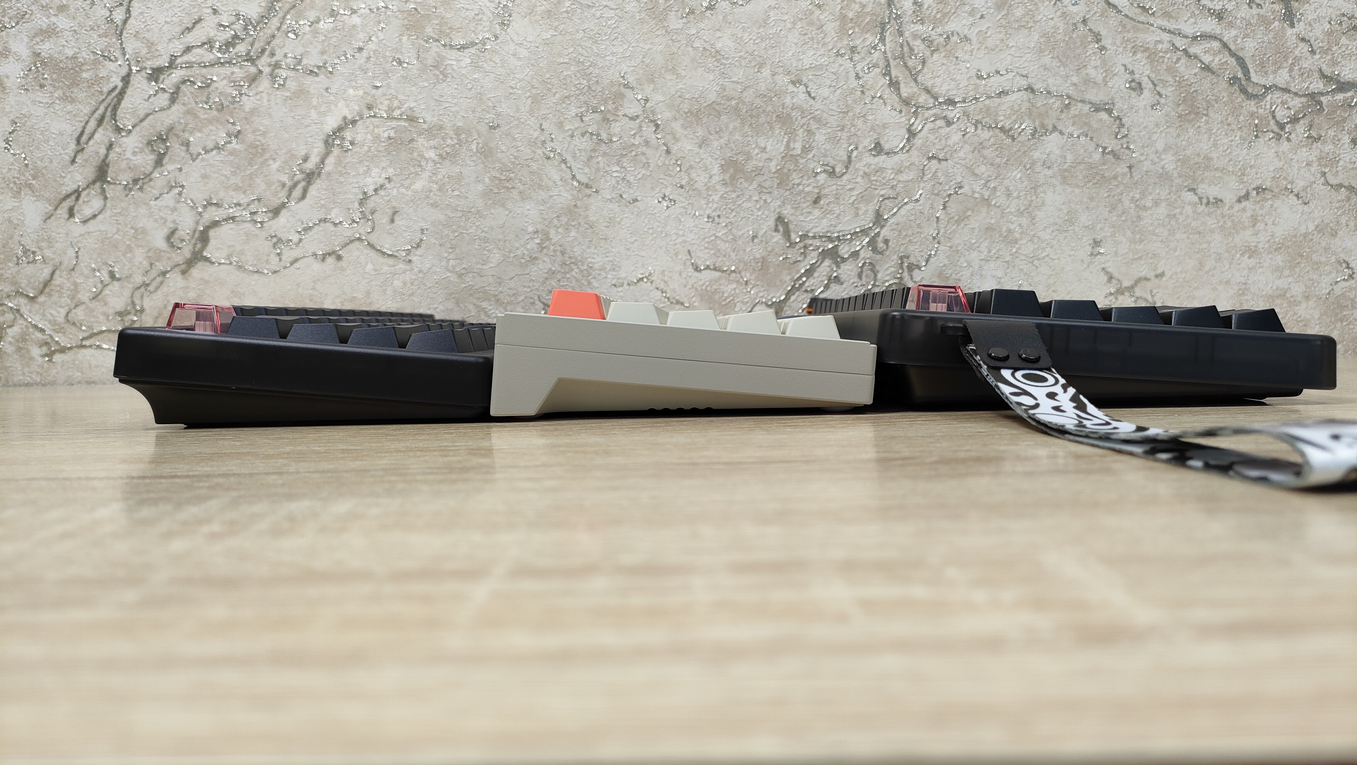 Клавиатур у меня три и все они компактные. Возможно, кто-то будет негодовать, ругаться и плеваться, а кто-то наоборот, будет в восторге, с трепетом смотреть видео и думать, насколько компактная она (клавиатура) нужна. Пара имеет одинаковый дизайн, да и относится к одной серии QK, V-клавиатура отличается не только ретро-дизайном, но и металлическим корпусом. Эта малютка весит 1.3 кг. Все они могут работать в беспроводном режиме, все работают с VIA, и все очень хорошо звучат.