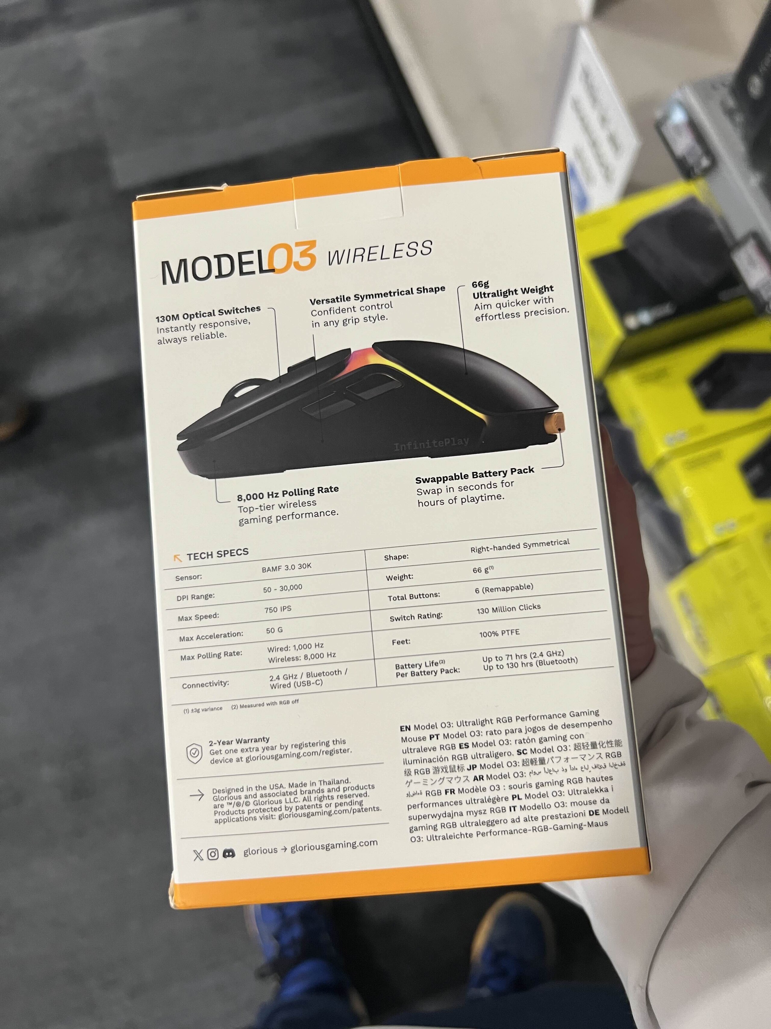 В розничной сети Best Buy до официального анонса появилась новая беспроводная игровая мышь Glorious Model O3. Устройство весом 66 грамм оснащено инновационной системой сменных аккумуляторов InfinitePlay, позволяющей заменять батареи без отключения мыши.