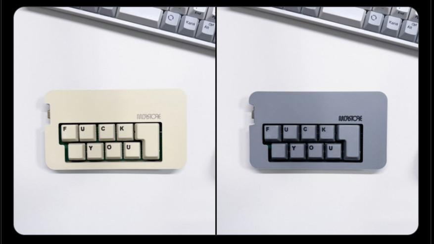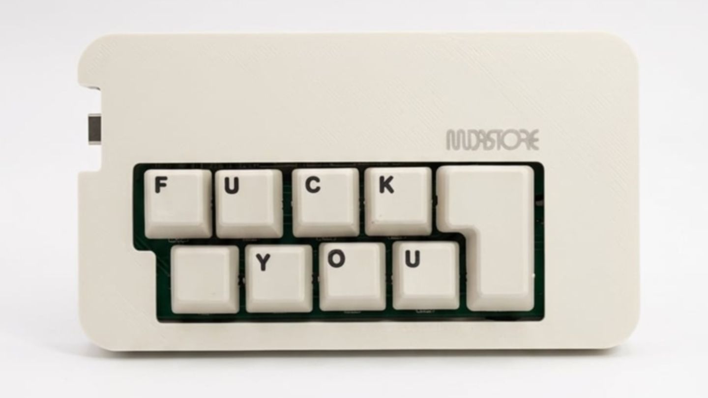 Японский изобретатель Марина Фудзивара представила кастомную мини-клавиатуру, раскладка которой ограничена набором букв для написания фразы «F*** YOU». Устройство содержит всего девять клавиш: F, U, C, K, Y, O, U, а также пробел и ввод (Enter).