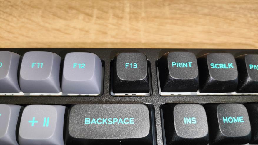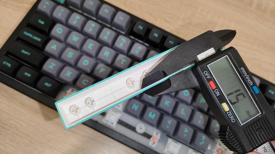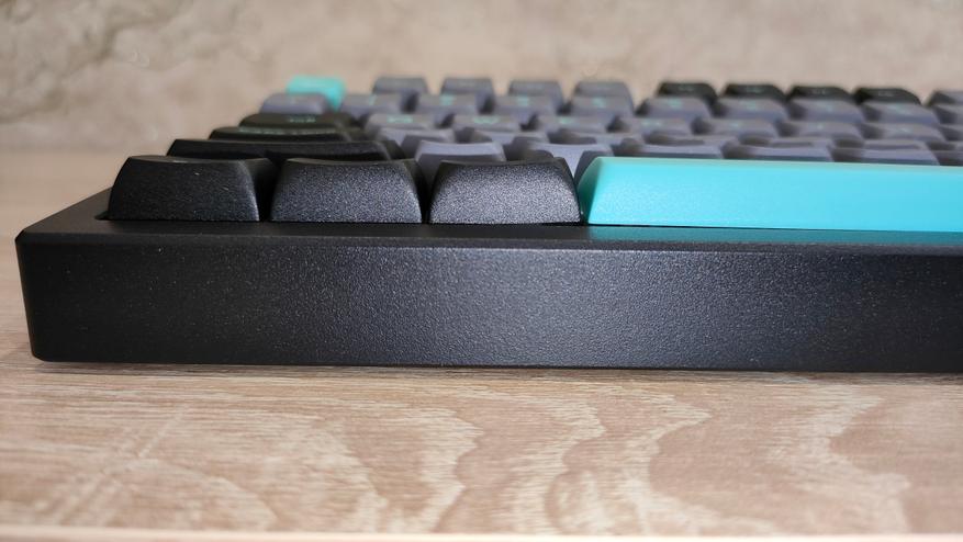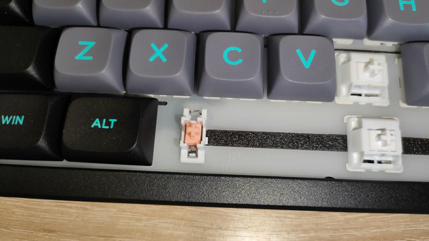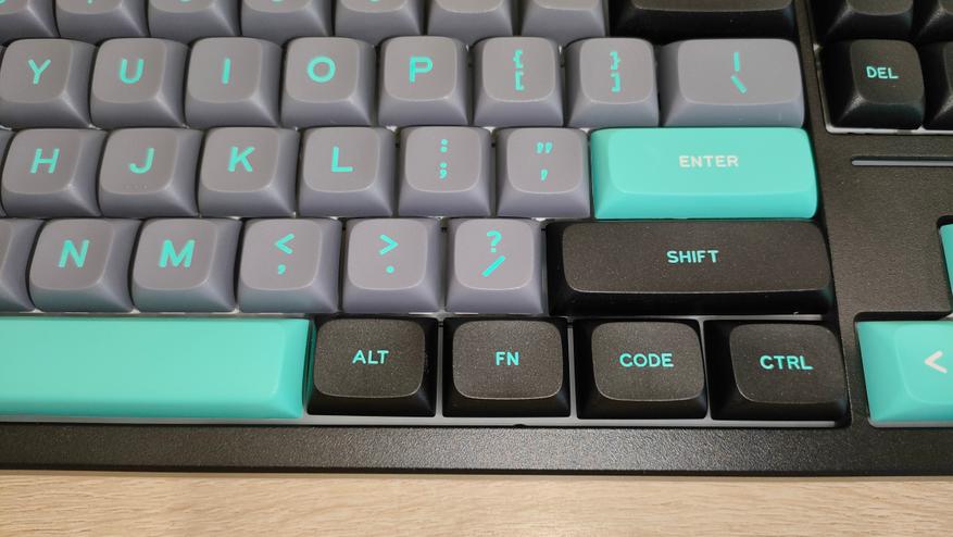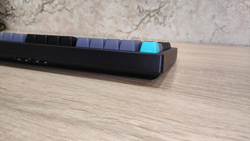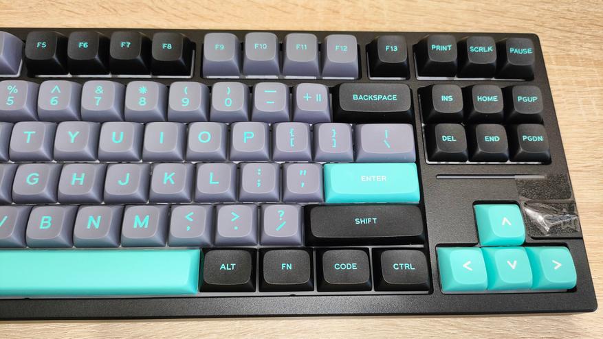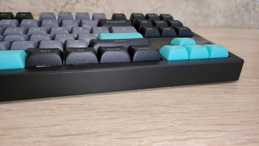 Профиль колпачков MDA, что современно, модно, молодежно и в целом есть любители именно *DA подобных профилей. Я всеядный и особо не привязываюсь к чему-либо. Формат клавиатуры TKL, с широкими шифтами и одноэтажным Enter. Многие на этом этапе фыркнут еще раз (ведь кириллицы тоже нет). А теперь об интересном, во-первых, Enter не стоял на своем месте и левой стороной не заходил в стабилизатор. Это небольшой дефект литья, я чуть поправил скальпелем и все встало на свои места. А еще если посмотреть на левый Alt, можно увидеть, что он стоит криво, у него крен на левый борт. Фактически, после исправления первого дефекта, по сути, остальное уже больше придирки, не все будут высматривать с линейками какие-то проблемы, просто поставят на стол и вперед, работать.