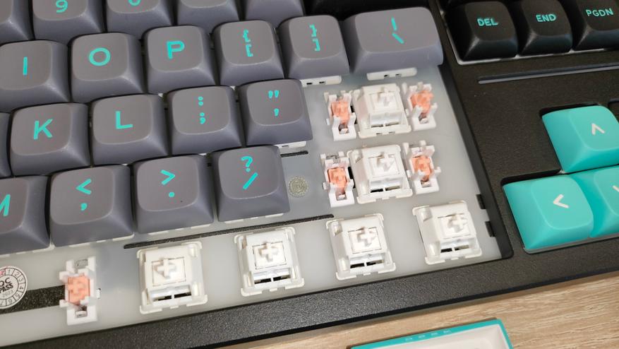 | Переключатели | Feker White Marble: линейный механический тип, усилие 42+-3 грамм до срабатывания и 47+-3 мм до упора, ход до срабатывания от 2,0+-0,3 мм до 3,5+-0,3 мм; смазаны с завода; горячая замена есть |