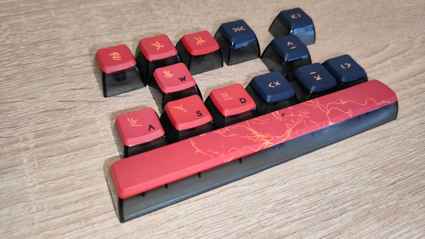 Колпачки, которые лежат в коробке дополнительно, изготовлены точно также, как и те, что уже установлены. WASD мне непонятно зачем нужны, если PBT не должны стираться, остальные можно найти применение, например, часть из них пойдет под блок редактирования вместо экрана, ну, а пробел можно установить классический, одинарный, т.к. из коробки стоит двойной.