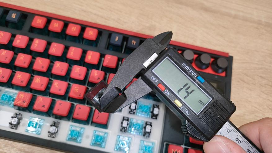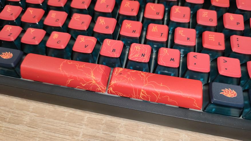 Колпачки, как уже говорилось с профилем ASA, а изготовлены из двух материалов: верх из PBT, низ из поликарбоната,