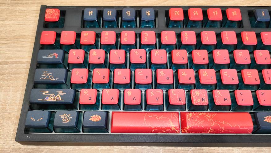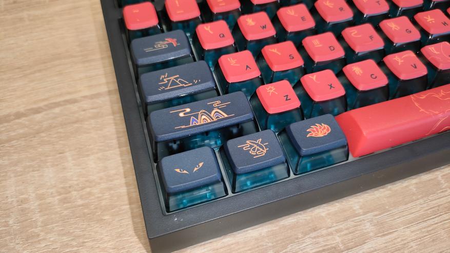 Формат клавиатуры TKL-образный, который подразумевает отсутствие лишь цифрового блока. Здесь клавиш явно больше не хватает, но это немного не так, вместо экрана можно установить привычный блок редактирования. В остальном, как обычно ANSI, шифты широкие, Enter одноэтажный. Профиль колпачков в моем случае ASA, в других вариантах будет другой, но не во всех.