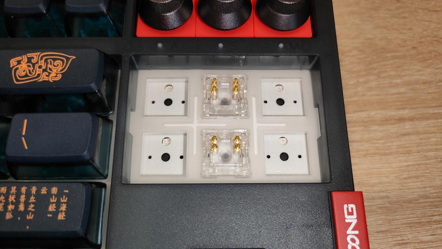 Первые нажатия сразу дают понять, что клавиатура не простая, т.к. звук глухой и что характерно, упирается клавиша очень тихо, видимо, не зря делали демпферы в переключателях. Но это быстро проходит, т.к. слышен и так называемый «песочек» не сильно, но слышно, а еще, что больше напрягает в тишине, звон пружин. Его я слышал у переключателей из коробки. И звенит именно пружина, я пробовал смазать только ее и звон полностью ушел, в звуковом тесте дам послушать. Эти два момента сильно портят впечатления от клавиатуры. Да, здесь есть горячая замена переключателей, да, можно смазать все, но это было бы простительно в клавиатуре за три, ну пять тыс. рублей, эта стоит в районе 10 и, на мой взгляд, такое себе занятие. Еще, прошу обратить внимание, что все сказанное относится к переключателям SKYLOONG Glacier Silent, с другими такого может и не быть, что в итоге даст вполне годную клавиатуру, которая, кроме всего прочего и выглядит потрясно. Кроме акустических претензий, больше ничего нет, работает она нормально, глюков не обнаружено.