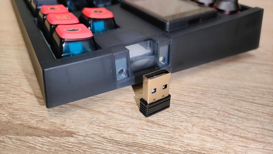 Подключение клавиатуры может осуществиться любым из трех способов: проводной способ, радиоканал с приемо-передатчиком и Bluetooth. С первыми двумя совсем все просто, подключаем и пользуемся. В случае синезуба, проходим простейшую и привычную процедуру сопряжения. По радиоканалу работает не только с ПК или ноутбуками, но и с телевизорами и ТВ-приставками, а Bluetooth со всеми, кто поддерживает устройства ввода с таким способом подключения, например смартфоны. Как всегда, доступно 3 профиля для разных устройств, для горячей смены. Качество работы «по воздуху» сильно зависит от внешнего окружения и сильно разнится от пользователя к пользователю.