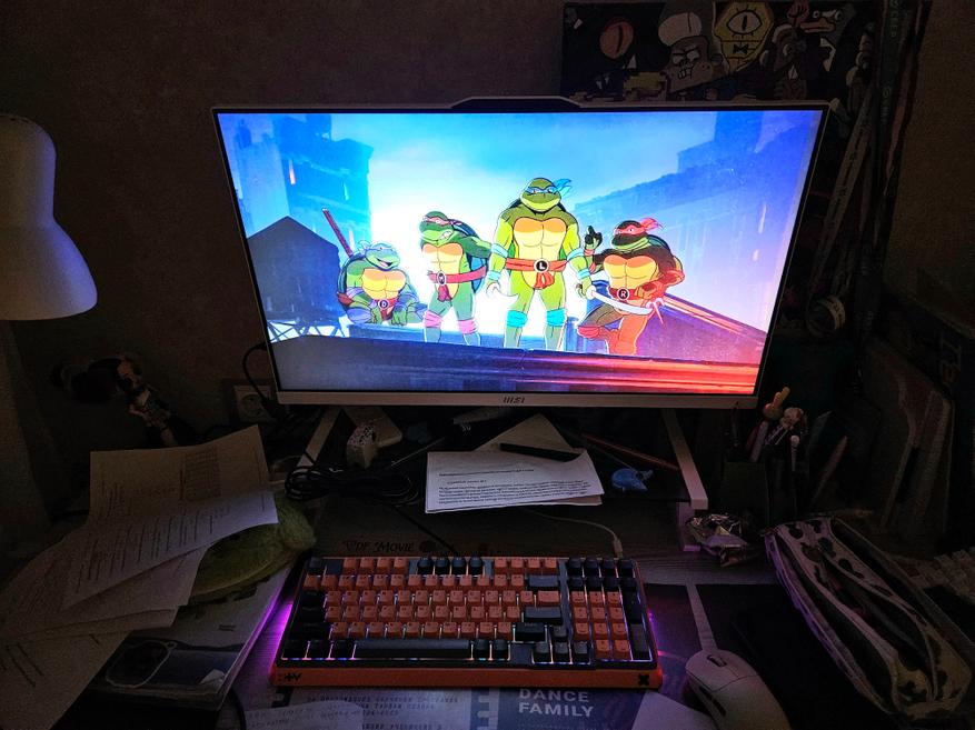 Сначала про тактильные ощущения: механические переключатели срабатывают с такой уверенной чёткостью, что кажется, будто сам Леонардо отдаёт команды. Ход клавиш абсолютно линейный и невероятно плавный. Когда на экране начинается хаос, а ты одновременно жмёшь на прыжок, атаку и специальное движение, пальцы не спотыкаются, а просто летают по клавишам.