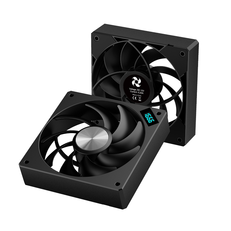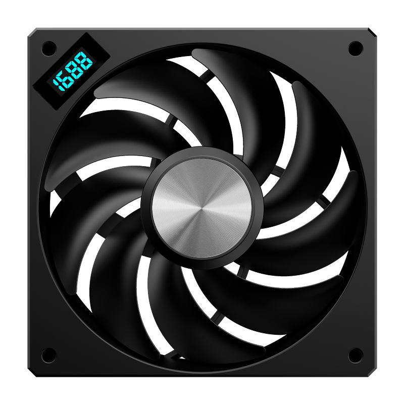 Устройство F23 развивает частоту вращения крыльчатки до 2200 RPM (допуск +-10%). При максимальной нагрузке формируется воздушный поток на уровне 79,99 CFM, а акустическое давление не превышает 32,4 дБА. Конструкция снабжена встроенным индикатором, отображающим текущие обороты. Доступный вариант исполнения — черный.