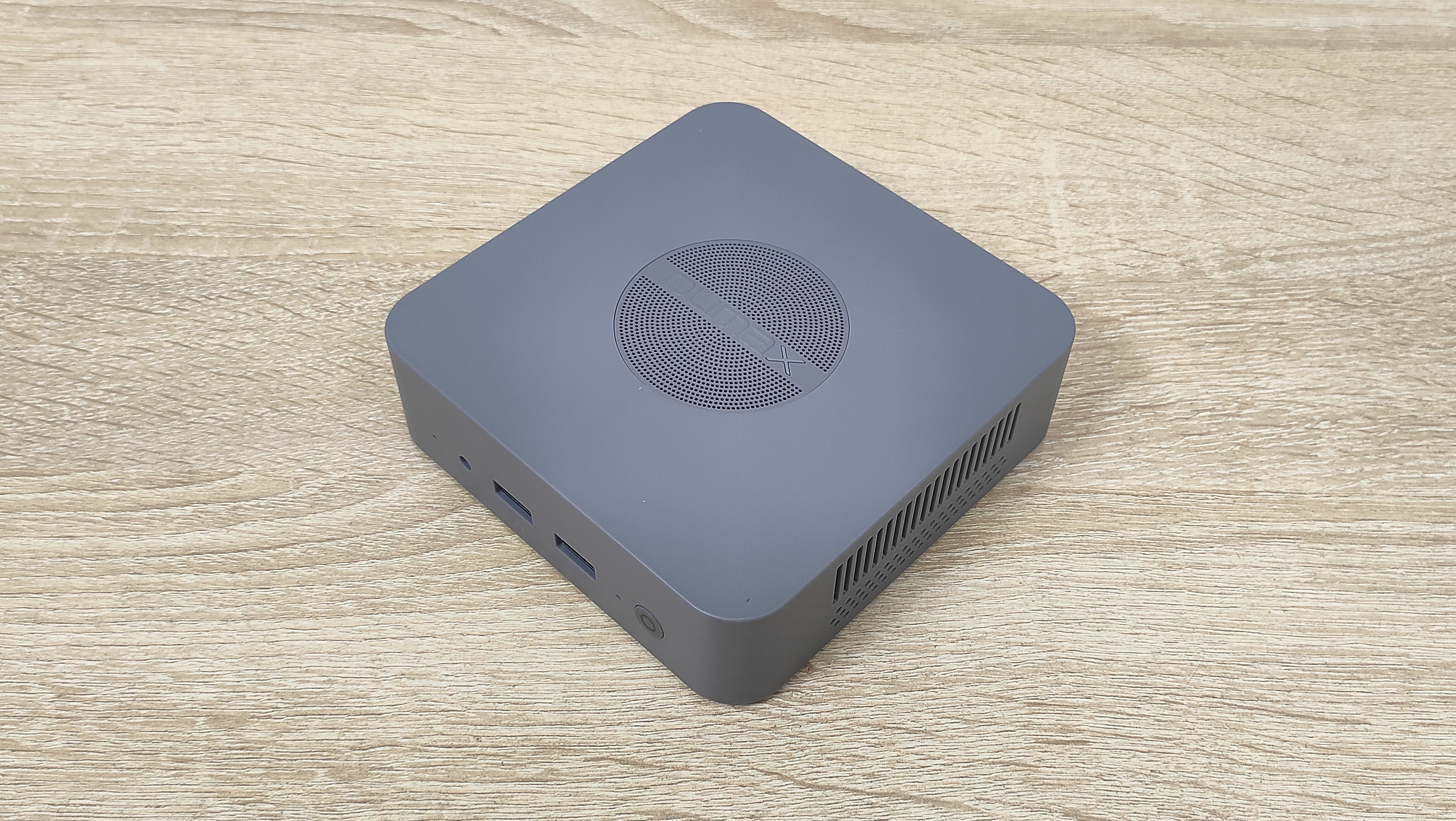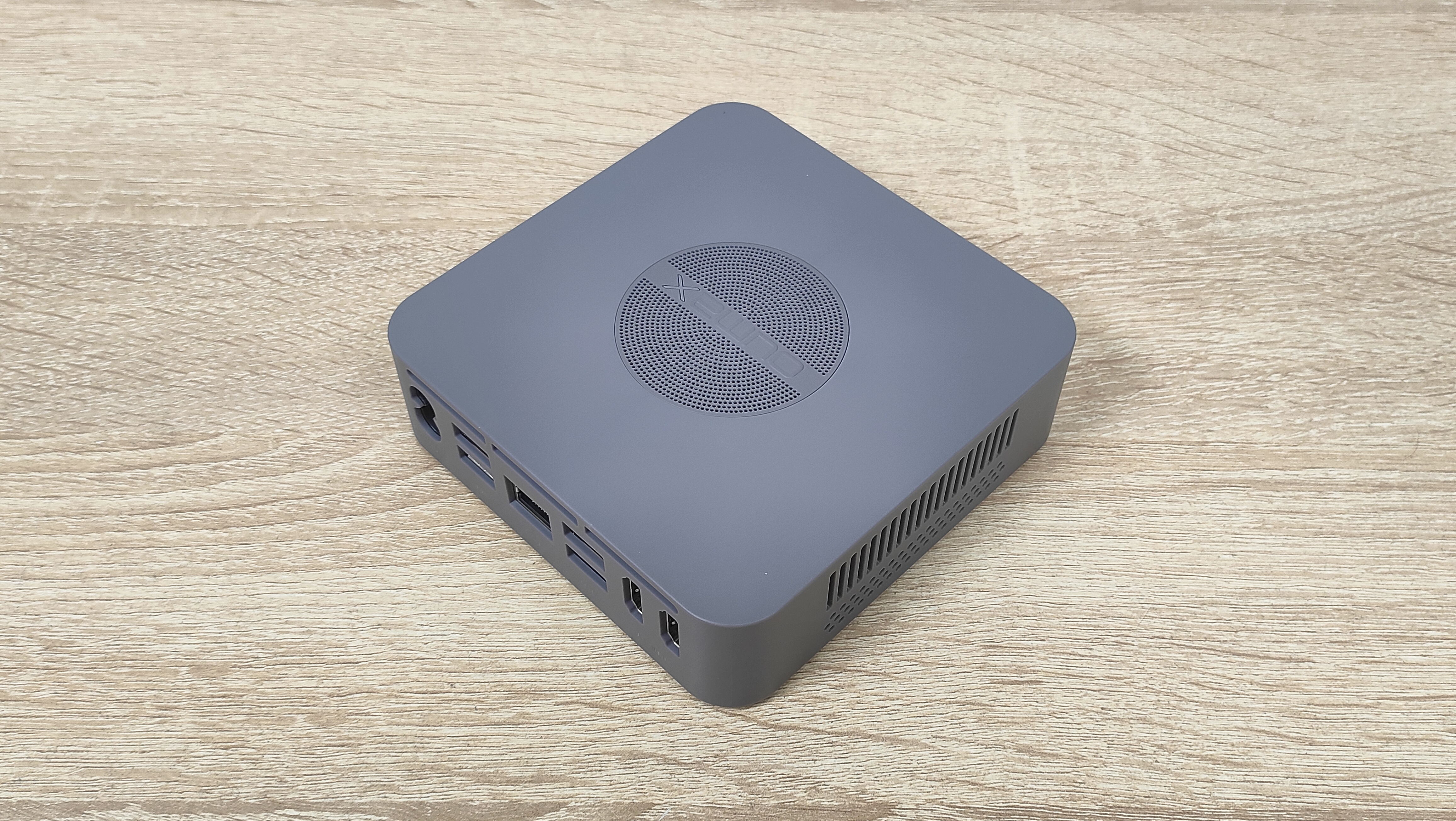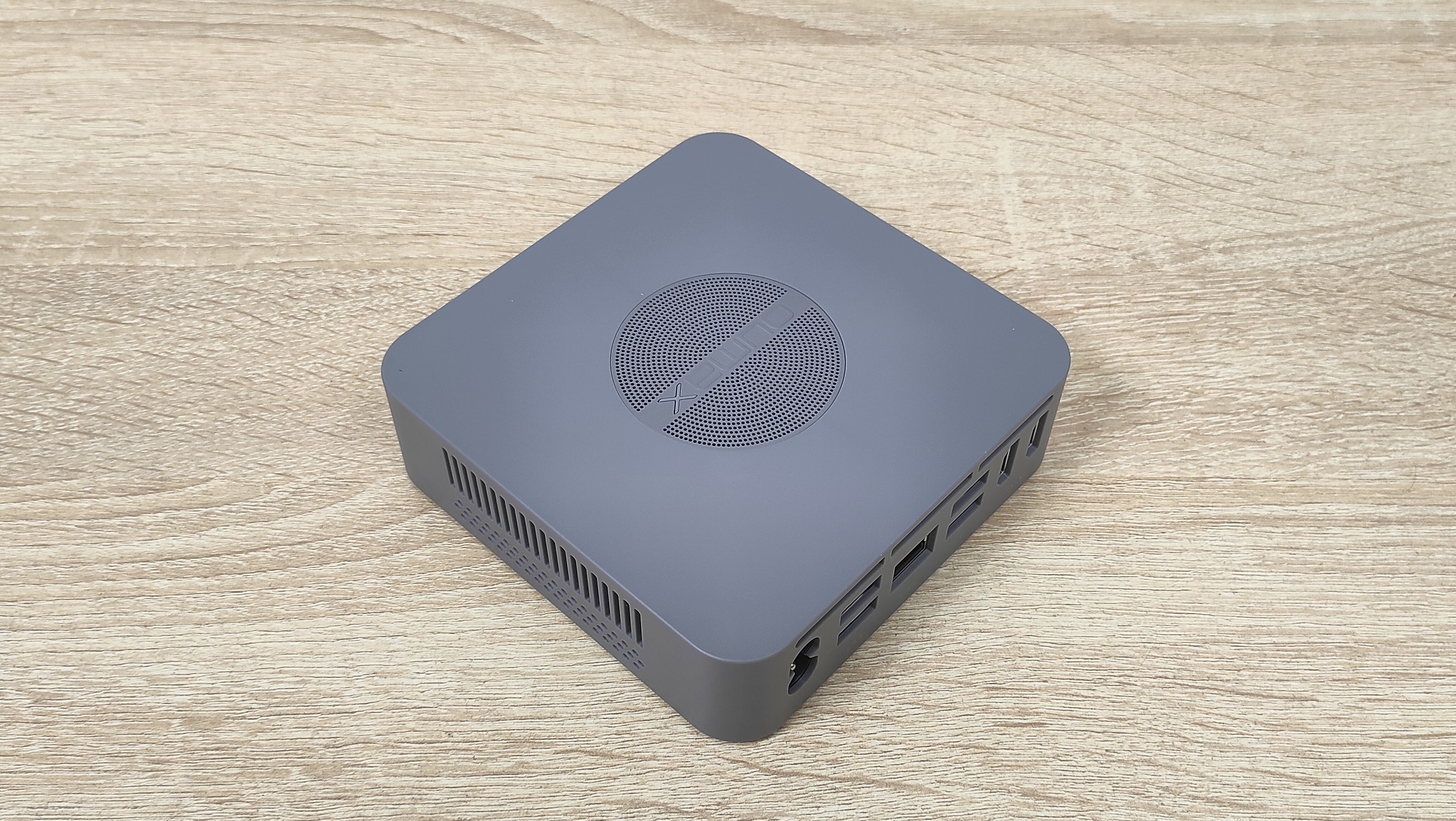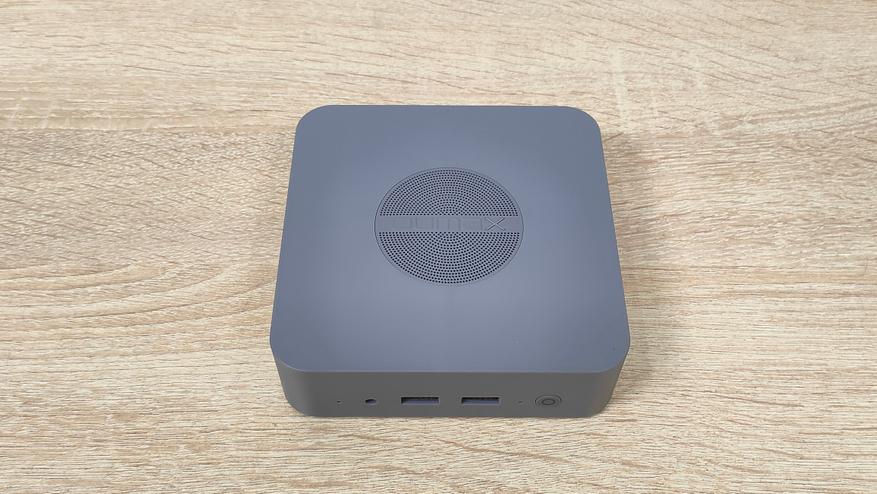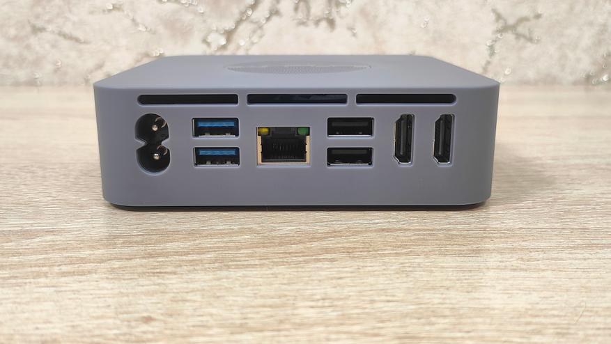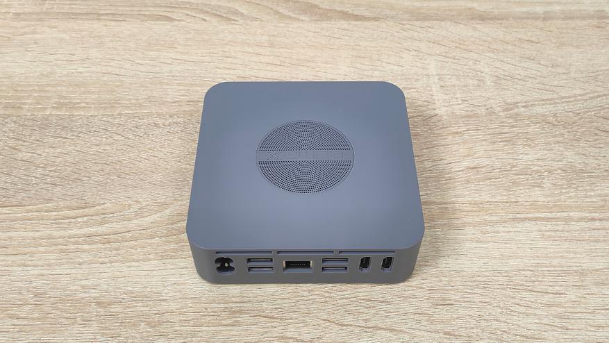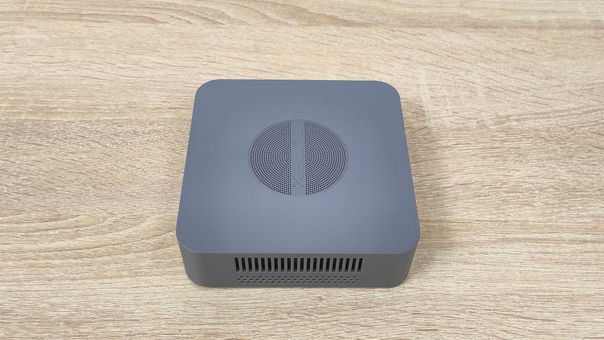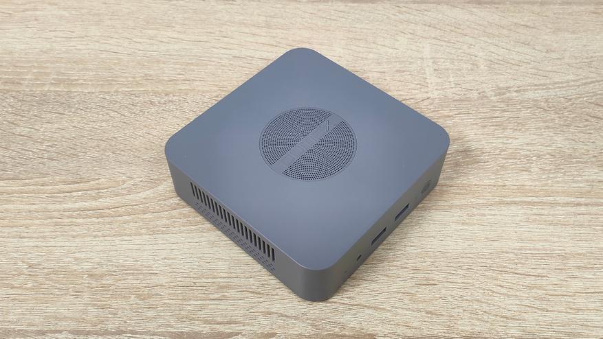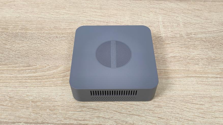 Данный мини-ПК имеет пластиковый корпус серого цвета и сразу бросается в глаза перфорация на верхней крышке. Я положительно отношусь к пластиковым корпусам, так как они не создают таких проблем для беспроводных интерфейсов, как металлические, а ещё, зачастую, никак не участвуют в охлаждении чего-либо в данном компьютере, не всегда, но часто.