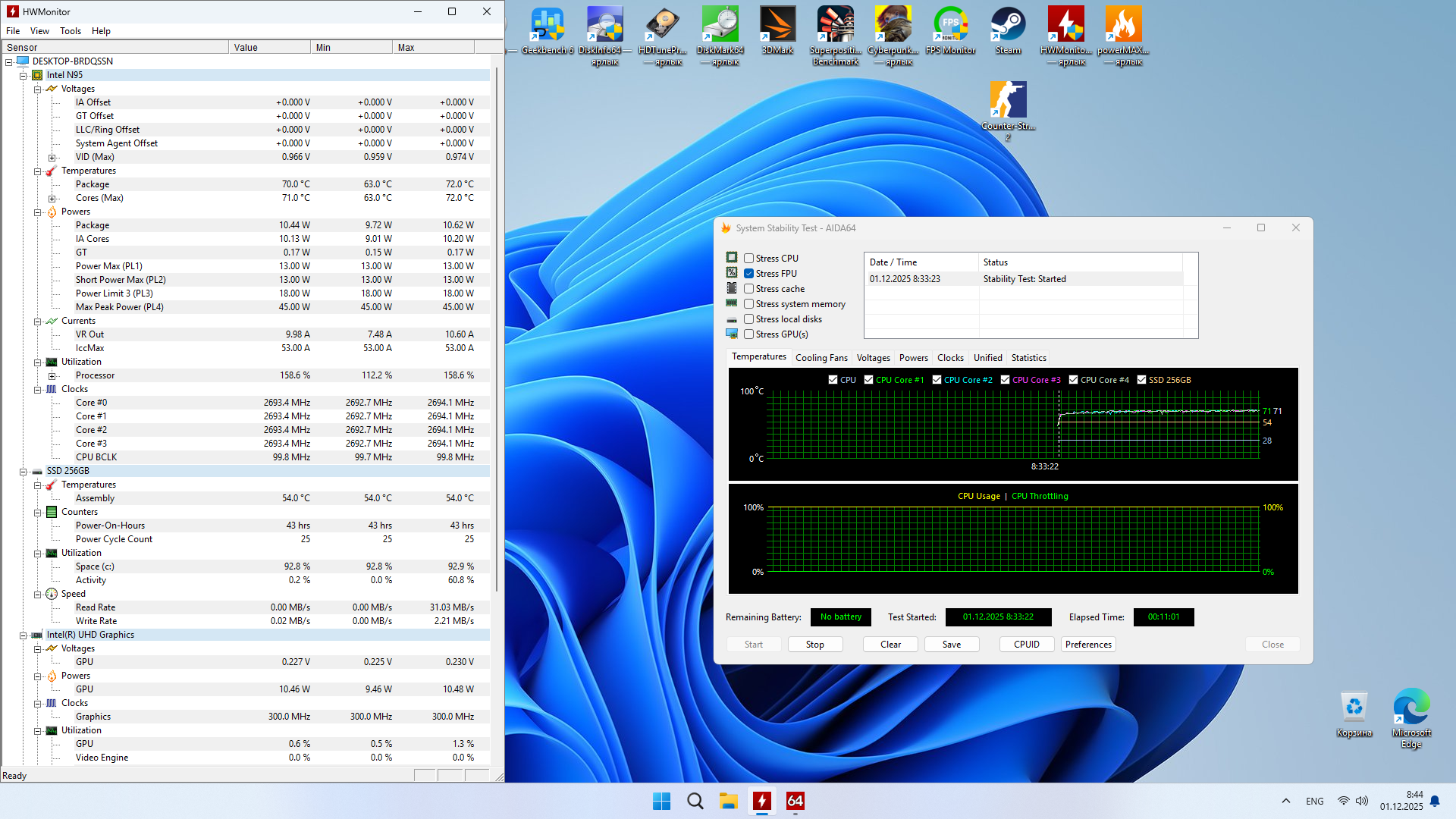 Как и раньше было мною сказано в других обзорах, повторюсь и в этом, N95, N100, N150, и наверняка N97 и N200 процессоры одного поля и их хватит на базовую офисную работу, либо базовые домашние потребности вроде: запустить кинцо, посидеть в соцсетях, посидеть в мессенджерах. Офисы вокруг меня имеют на руках несколько таких машинок и проблем особых не видят, кто-то работает легко и непринуждённо в текстовых документах, кто-то в 1С фреш (в браузере). Поэтому, если выбрать машинку по конкретному сценарию, то проблем не будет. Естественно при чистой установке я отключаю всю фоновую «мишуру от винды», чтобы меньше было причин нагрузить процессор, тут никакой магии нет, процессор неособо мощный=слабый, поэтому, можно и нужно последить за этим, так что использование твикеров не за горами. Так что, расчехляем, но не используем XP Tweaker и занимаемся оптимизацией. Если сравнить производительность данного компьютера на N-процессоре, то она находится чуть на среднем уровне, то есть есть куда расти и на кого равняться.